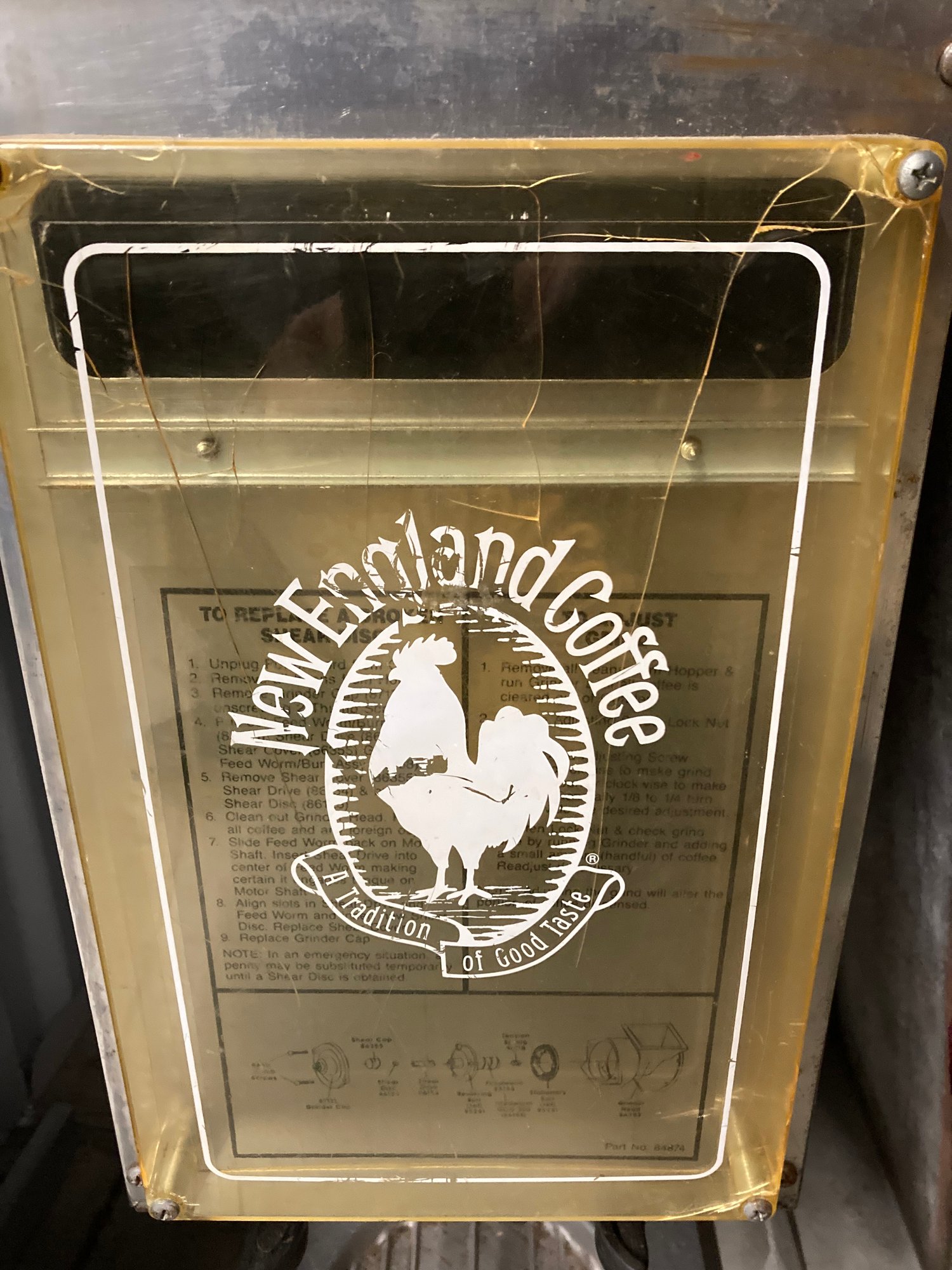 Grindmaster Commercial Coffee Grinder. Plastic front is cracked. Fair to good condition. Works well. Dimensions are: 20 3/4” tall x 8” wide x 14” deep.