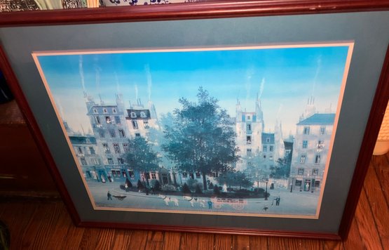 Print of a city scene. Dimensions: 30” tall x 36” wide. Good condition.