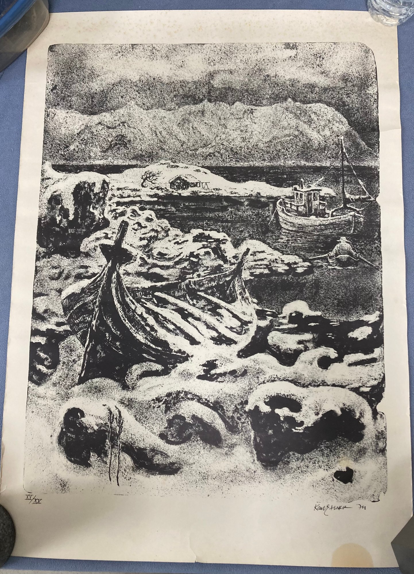 Print by Kane Harr. 9 of 10. Dimensions are: 27 1/2” tall x 19 1/2” wide. Condition: Some floxing. Small tear on right side in center corner. See photos.