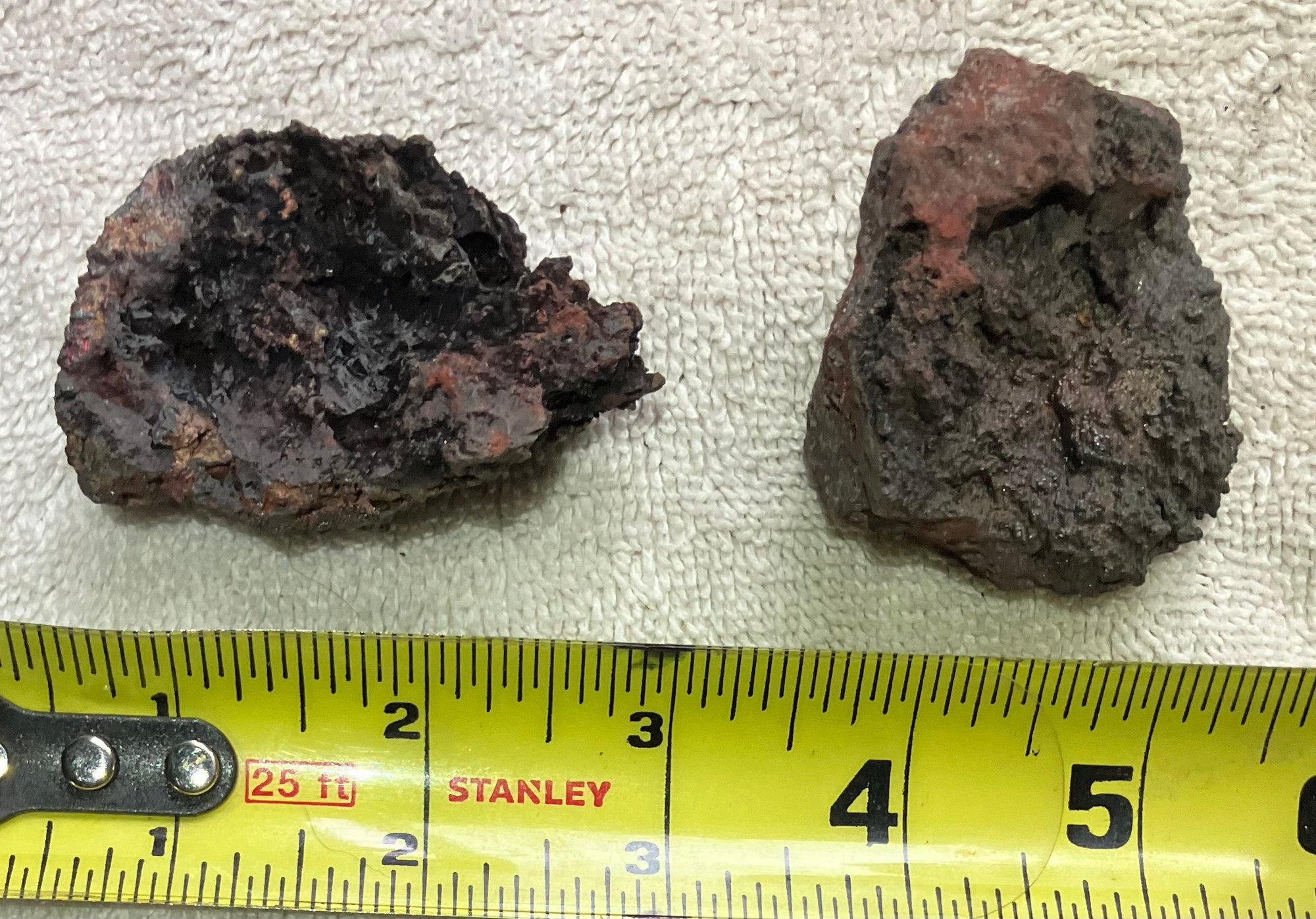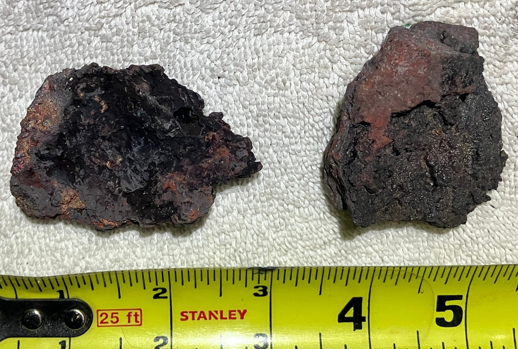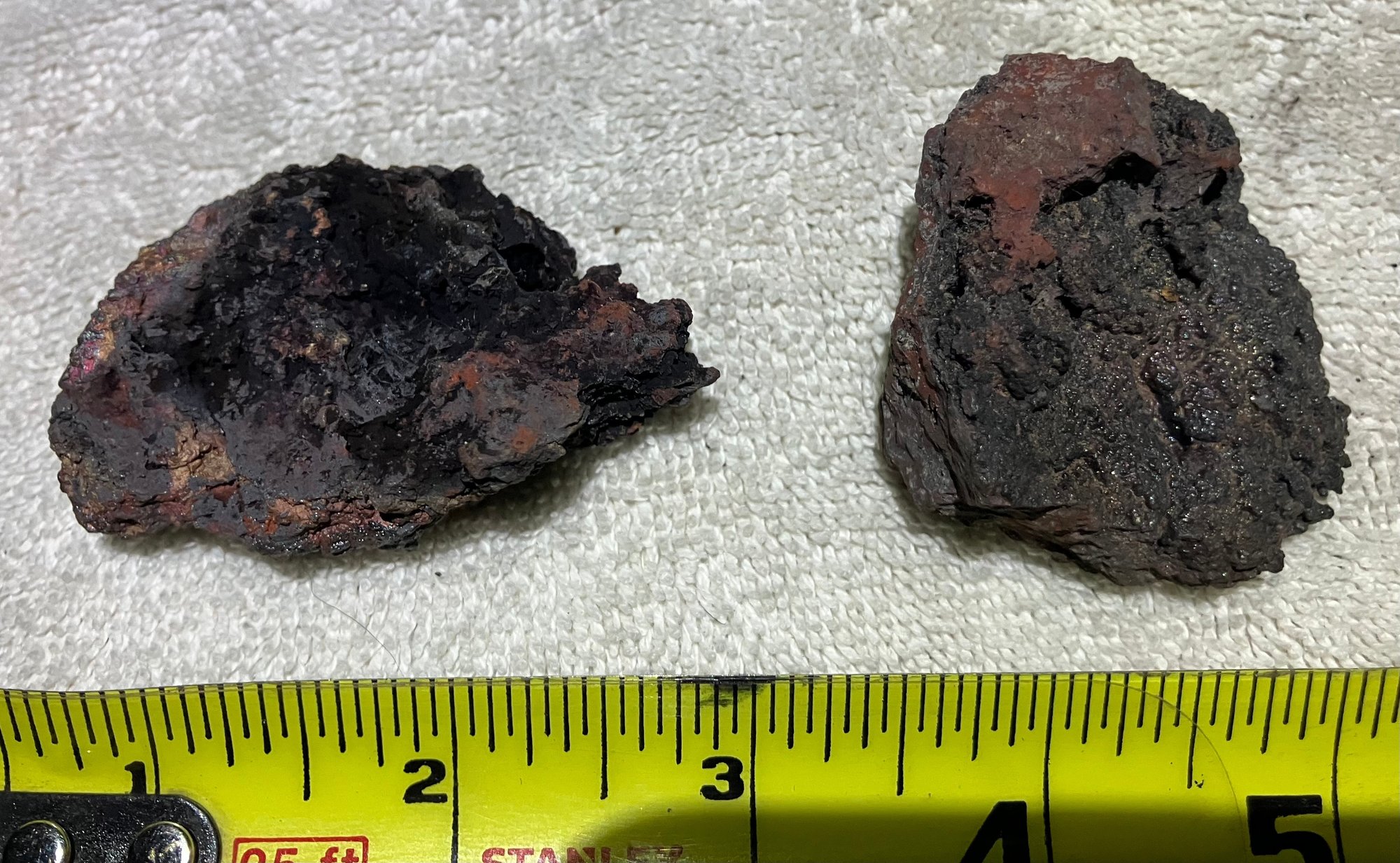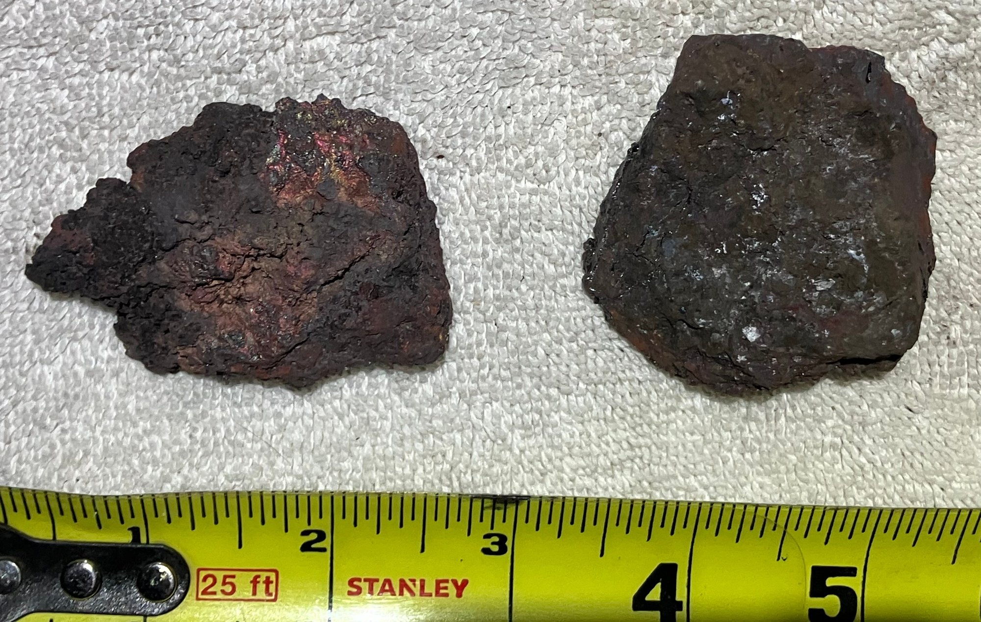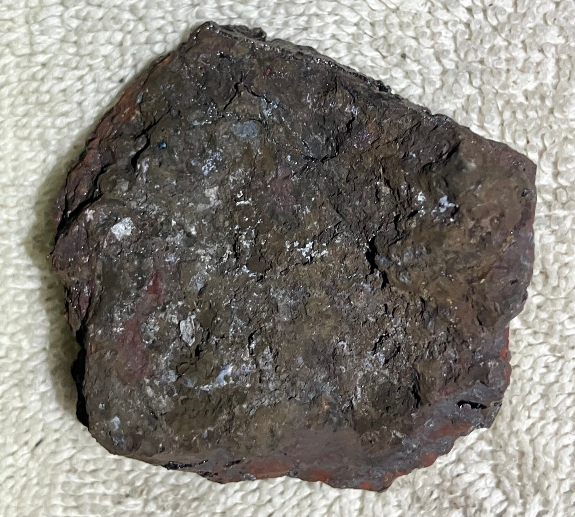 Natural Iron ore, not slag. Some iridescence.