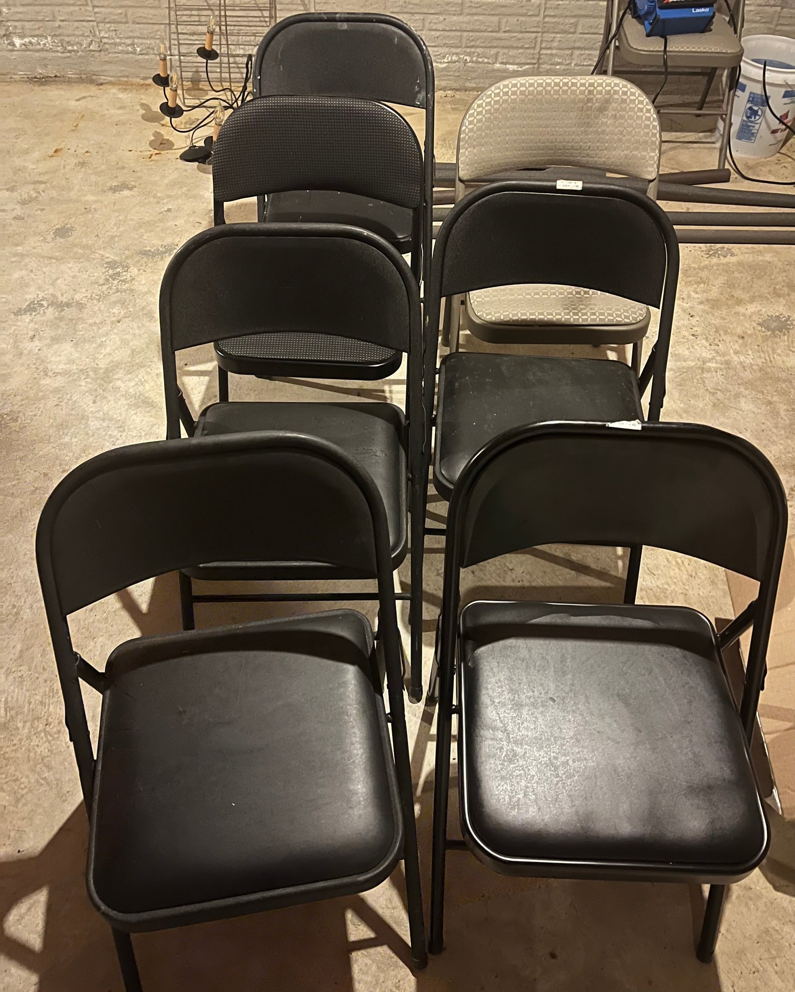 Seven Metal folding chairs.