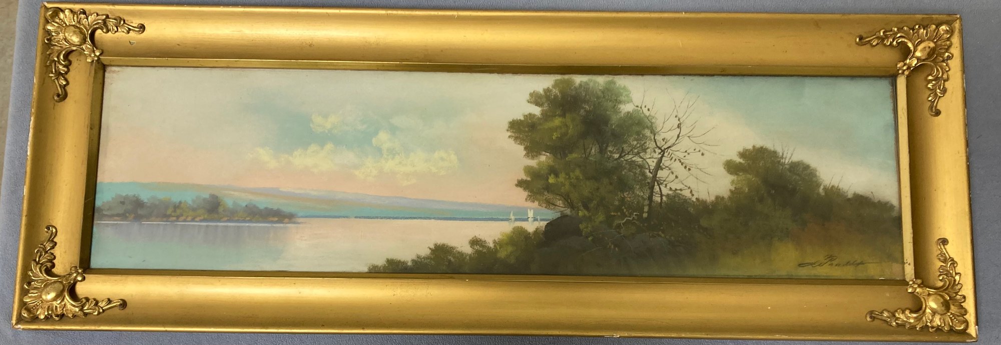 Signed 19th Century watercolor. Frame dimensions are: 12” tall x 33 3/4” long. Watercolor dimensions: 8” tall x 30” wide. Condition: See photos.