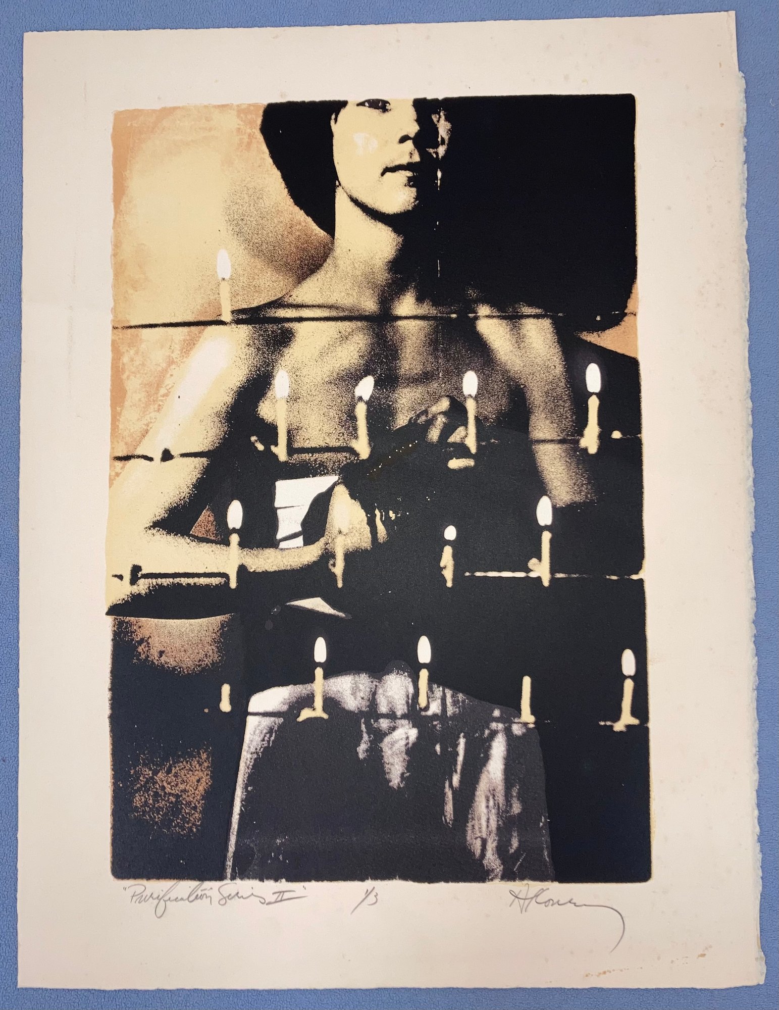 Signed Man and candles “Purification” Series II 1 of 3 A/P. Dimensions are: Condition: See photos.