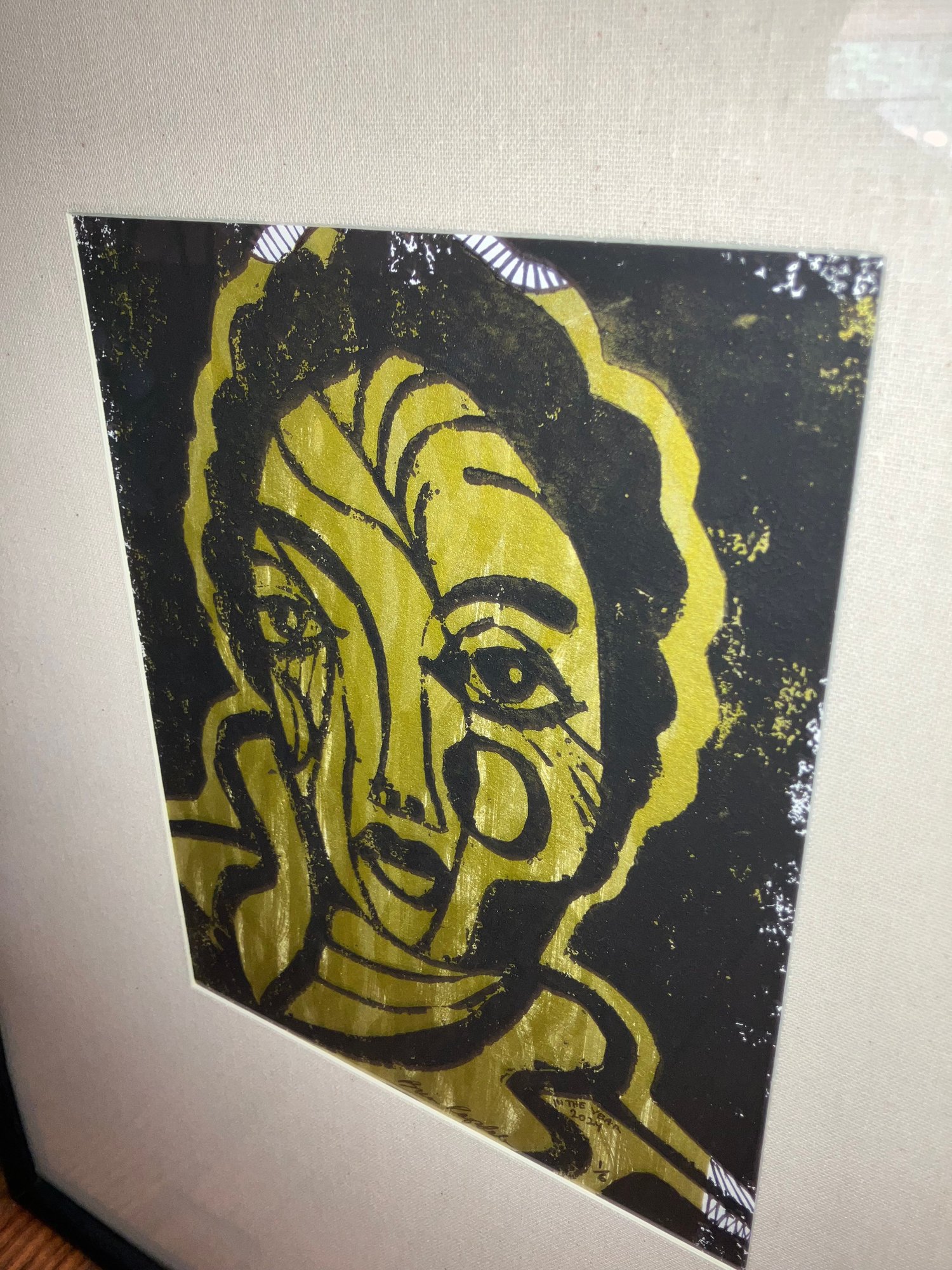 Signed original styrofoam print by Brian Ragsdale ‘84. Dimensions: frame: 25” tall x 19” wide, painting: 9 1/2” tall x 7 1/2” wide. Good condition.