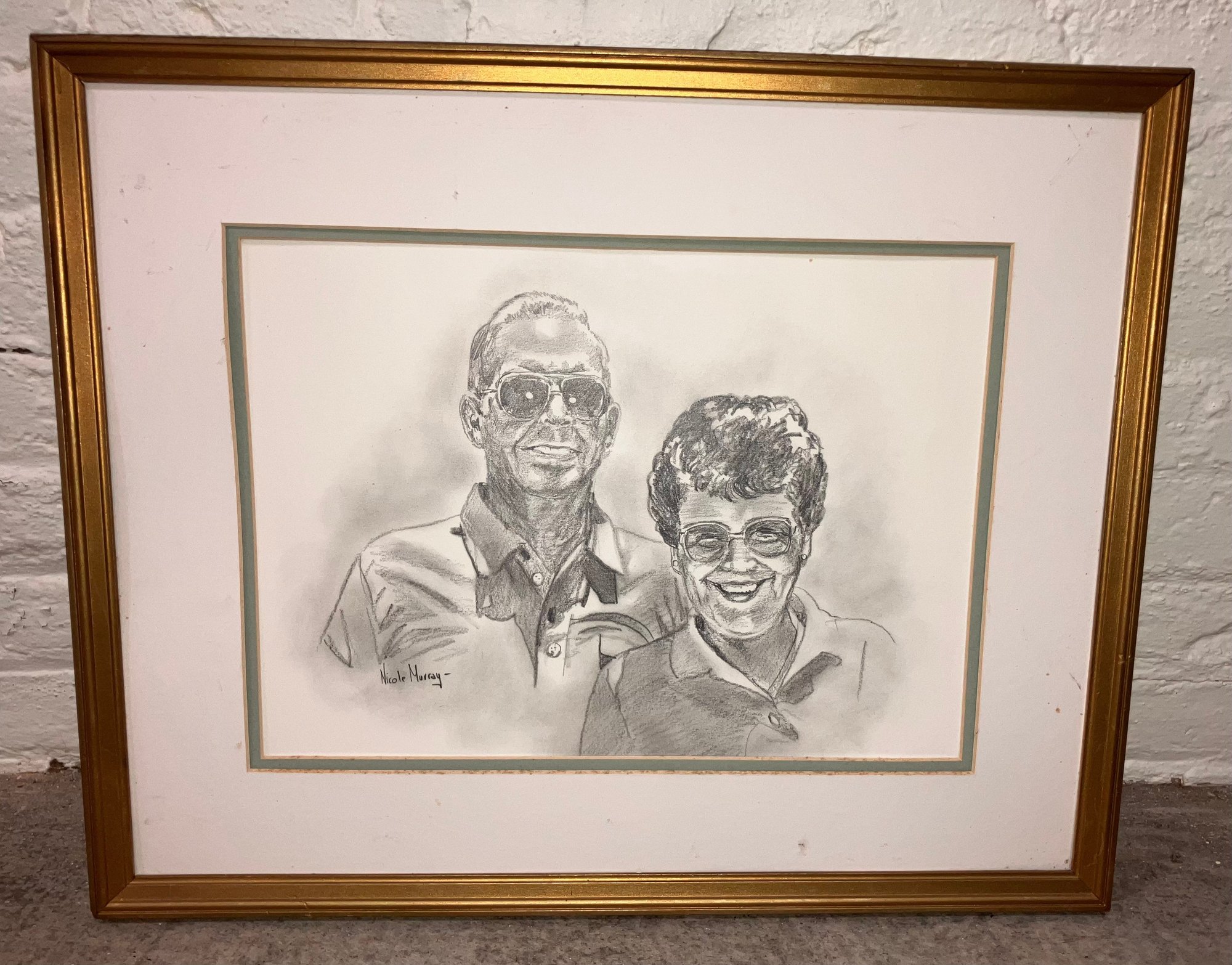 Signed pencil drawing by Nicole Murray. It is framed and matted. Good condition. Frame dimensions are: 16 3/4” tall x 20 3/4” wide. Pencil drawing dimensions are: 10 1/4” tall x 14 1/2” wide.