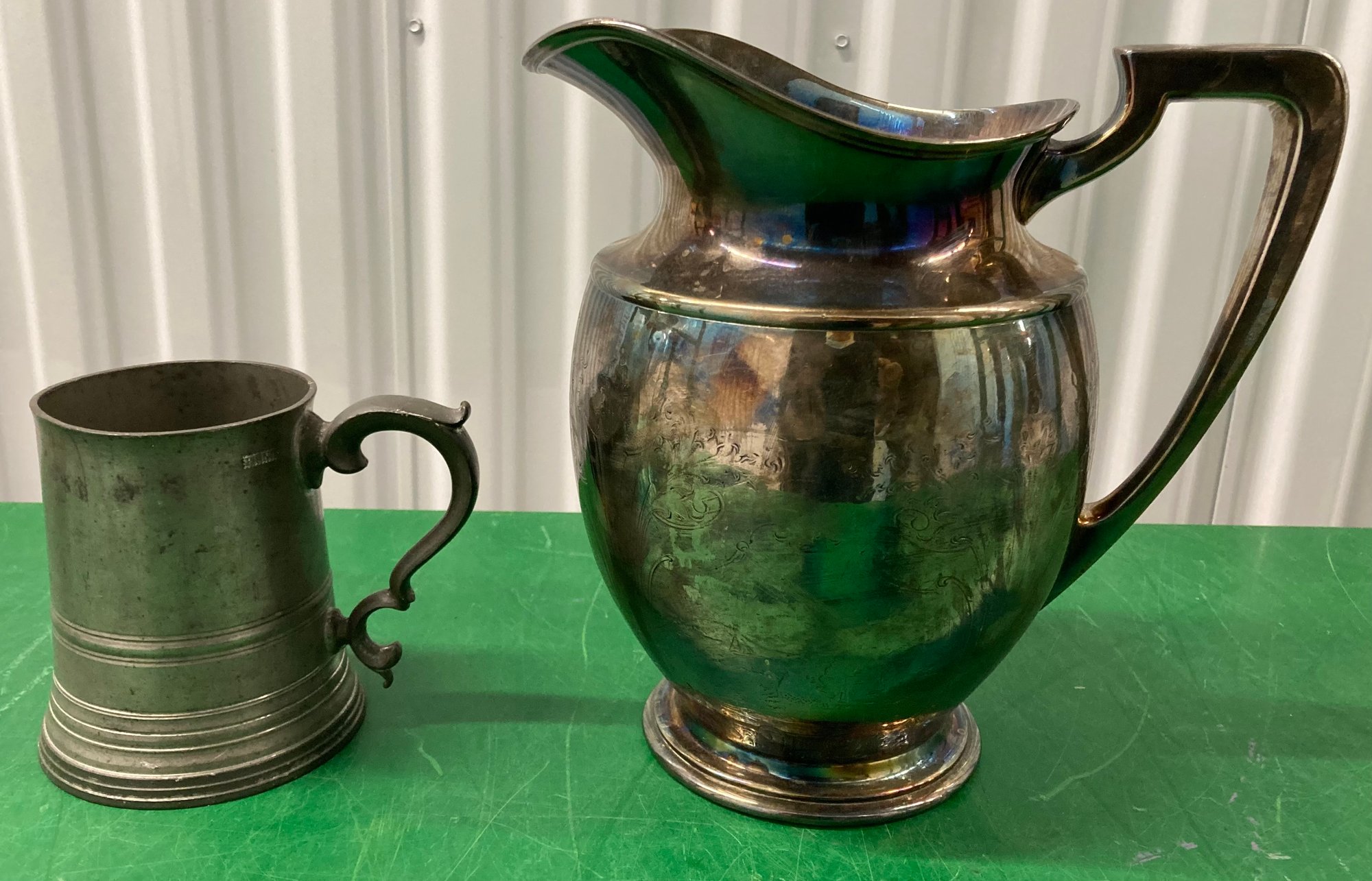 Silver Plate Pitcher And Cup. Fair to good condition.