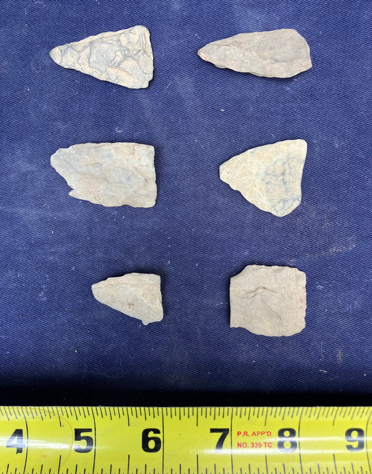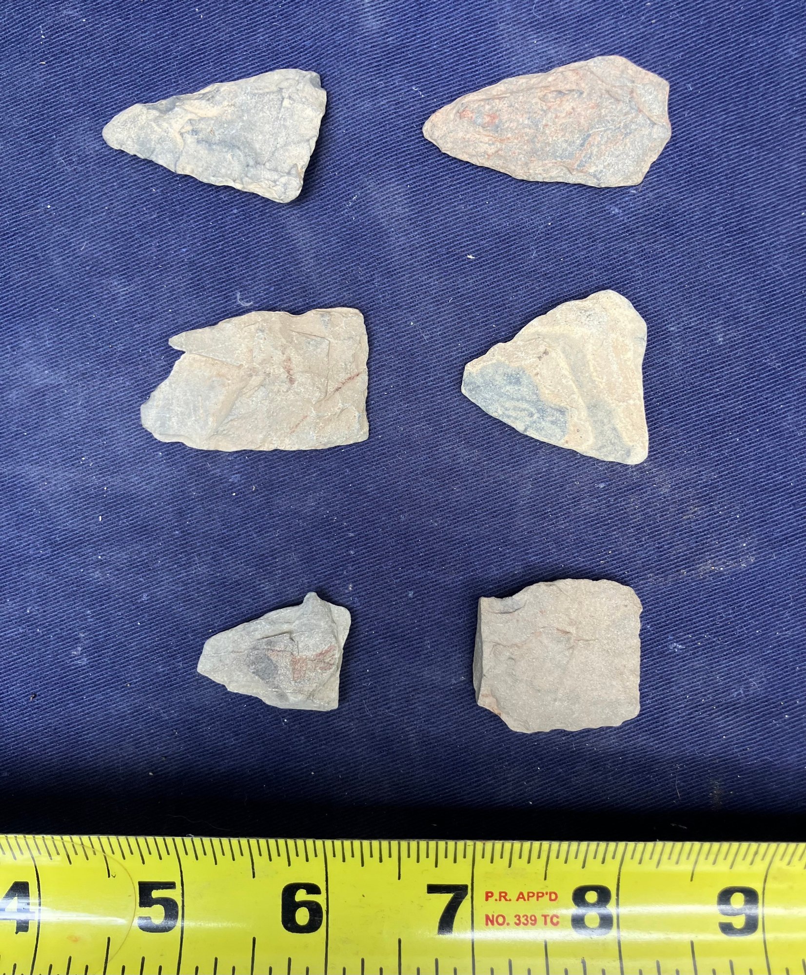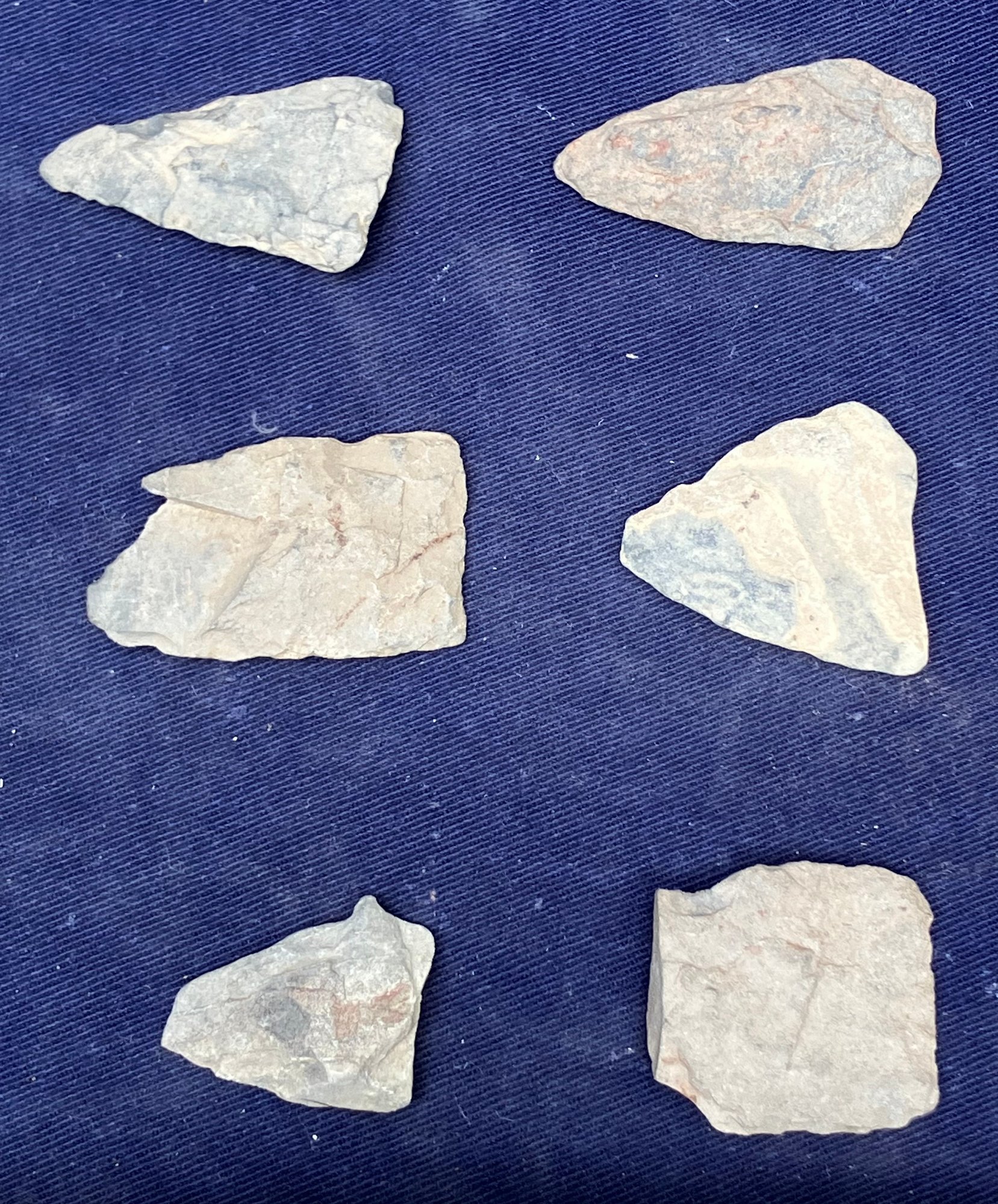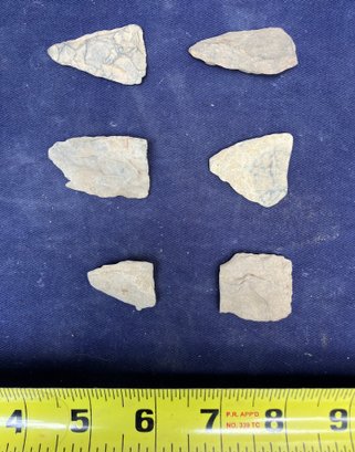 Found at a Native American dig site. Repurposed broken points into blades and scrapers. Paleo-Indian/Archaic Period.