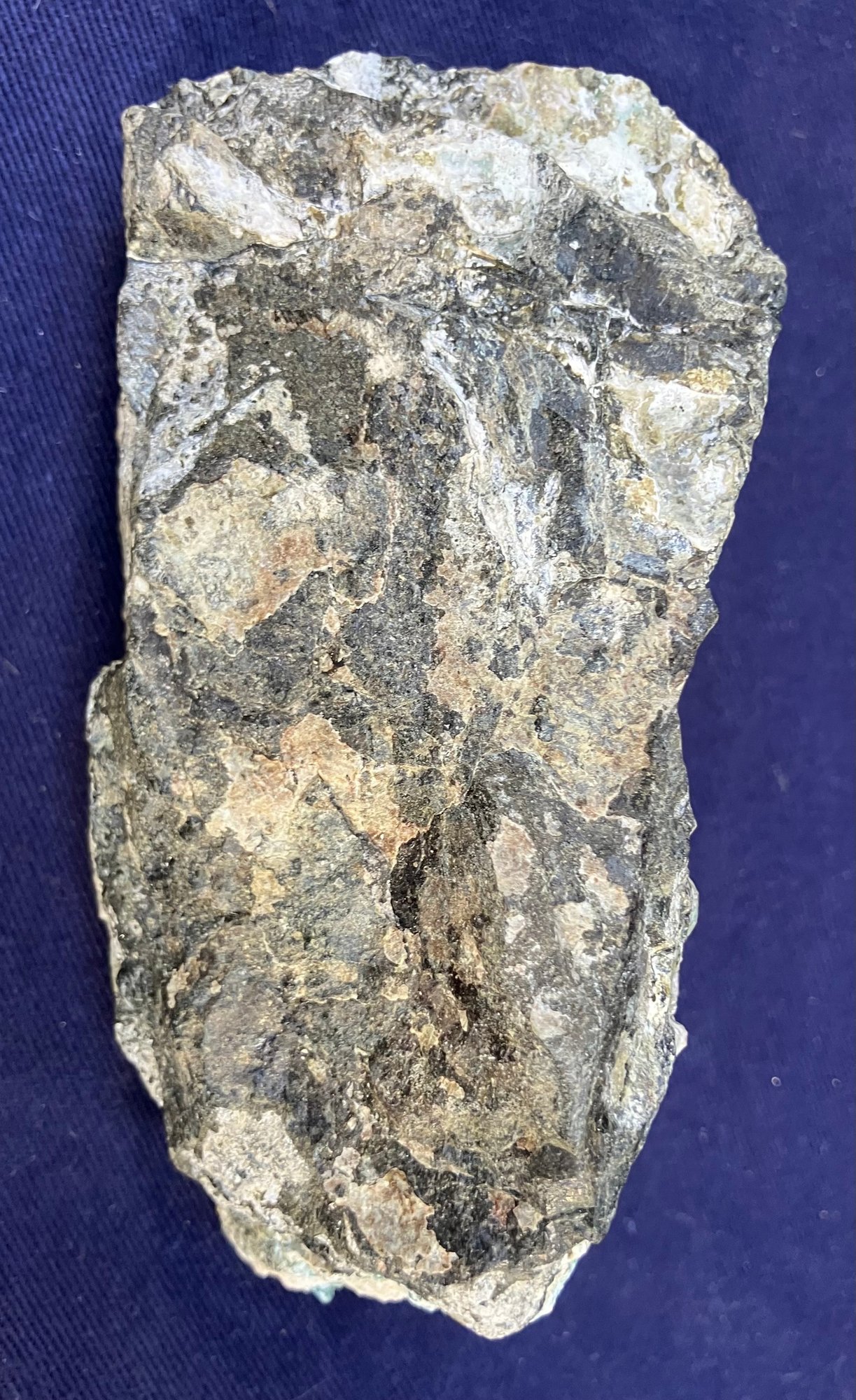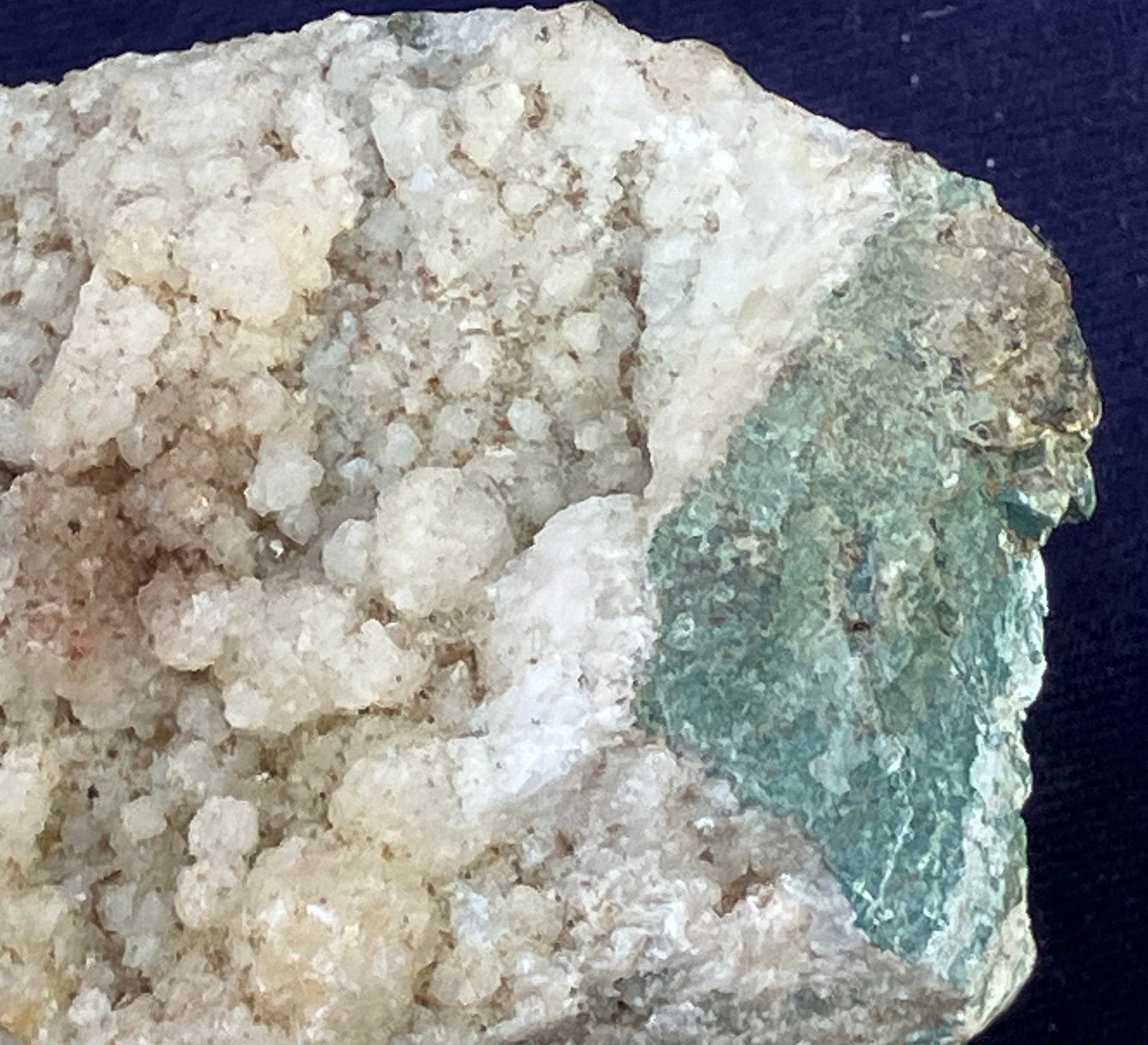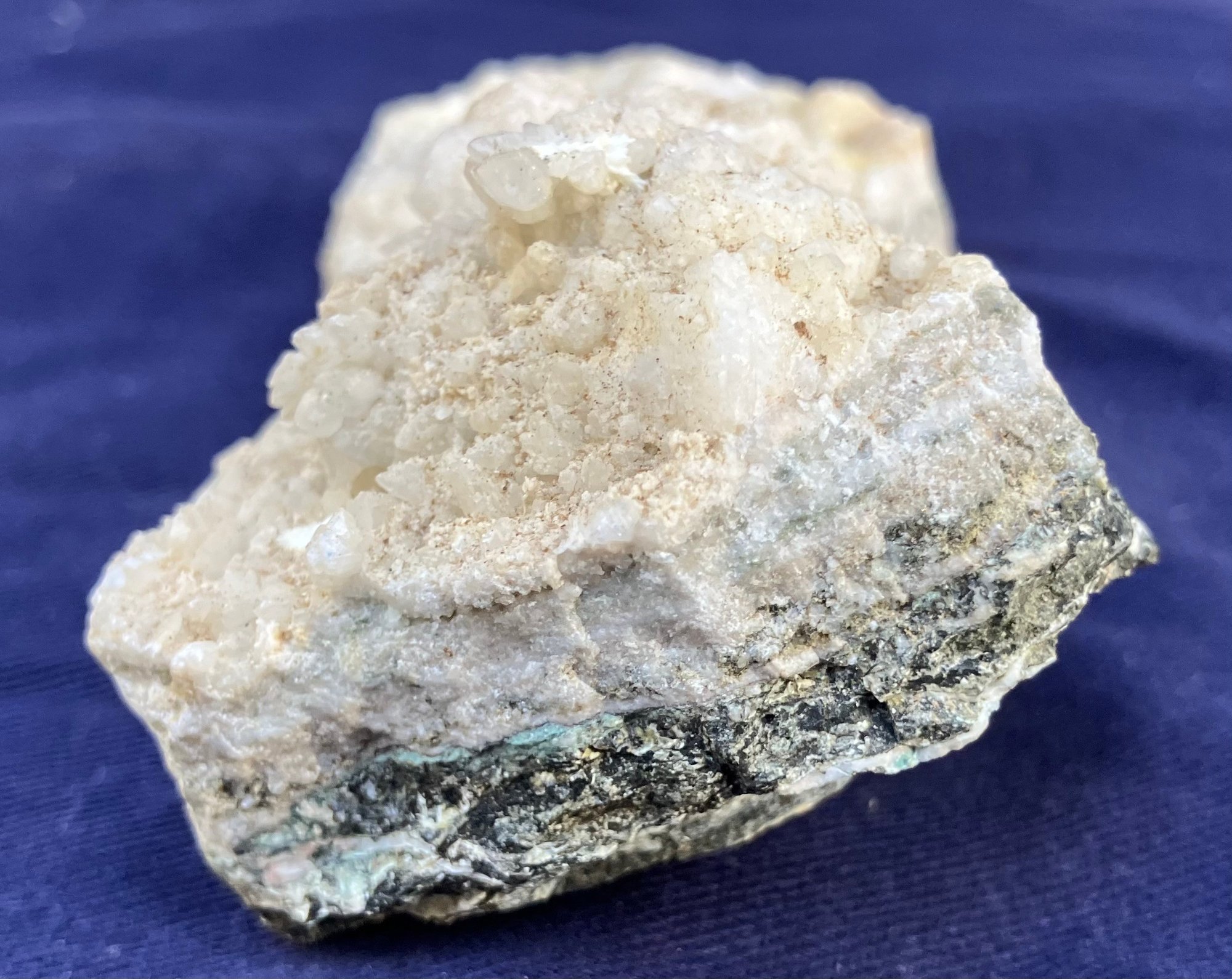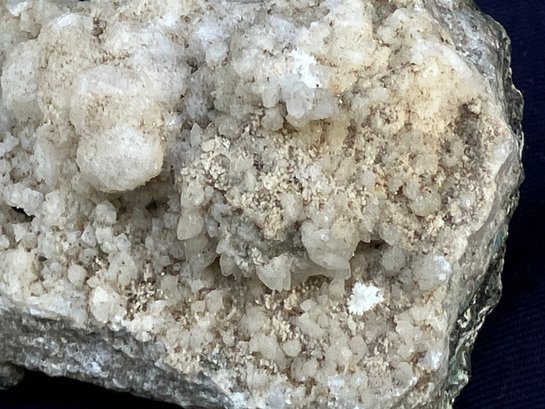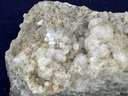 Stilbite with botryoidal formation. One small area showing a pinkish tone and there are two small sites of yellow sulfides. Measures: 1 1/2” tall x 2” wide x 4” long. Weighs: 7.9 ounces.