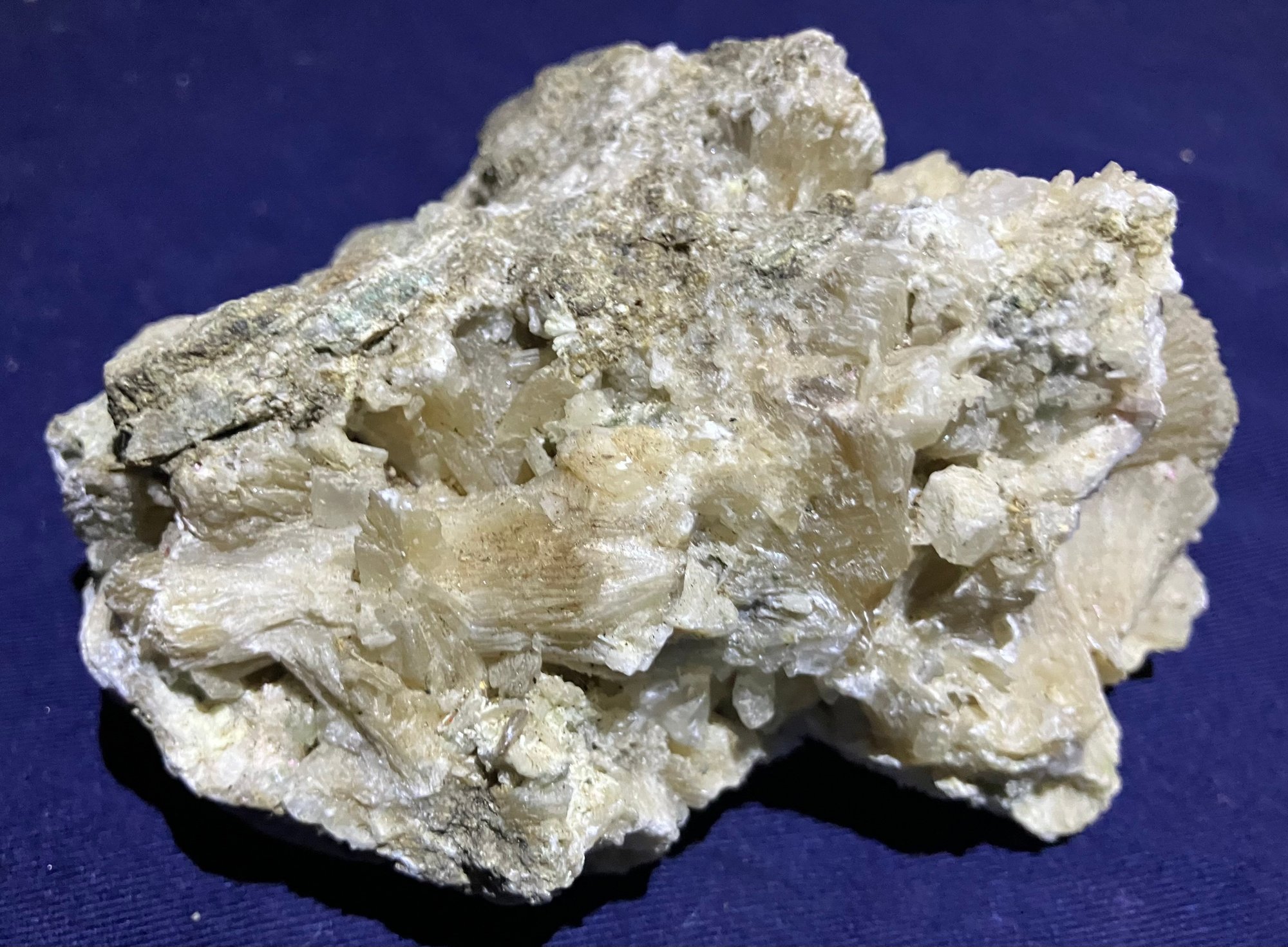 Stilbite Crystal cluster specimen. It has a few small areas of green. It has a flower crystal structure on one end. Measures: 2 1/4” tall x 3 3/4” wide x 4 1/2” long. Weighs: 1 pound 2 ounces.