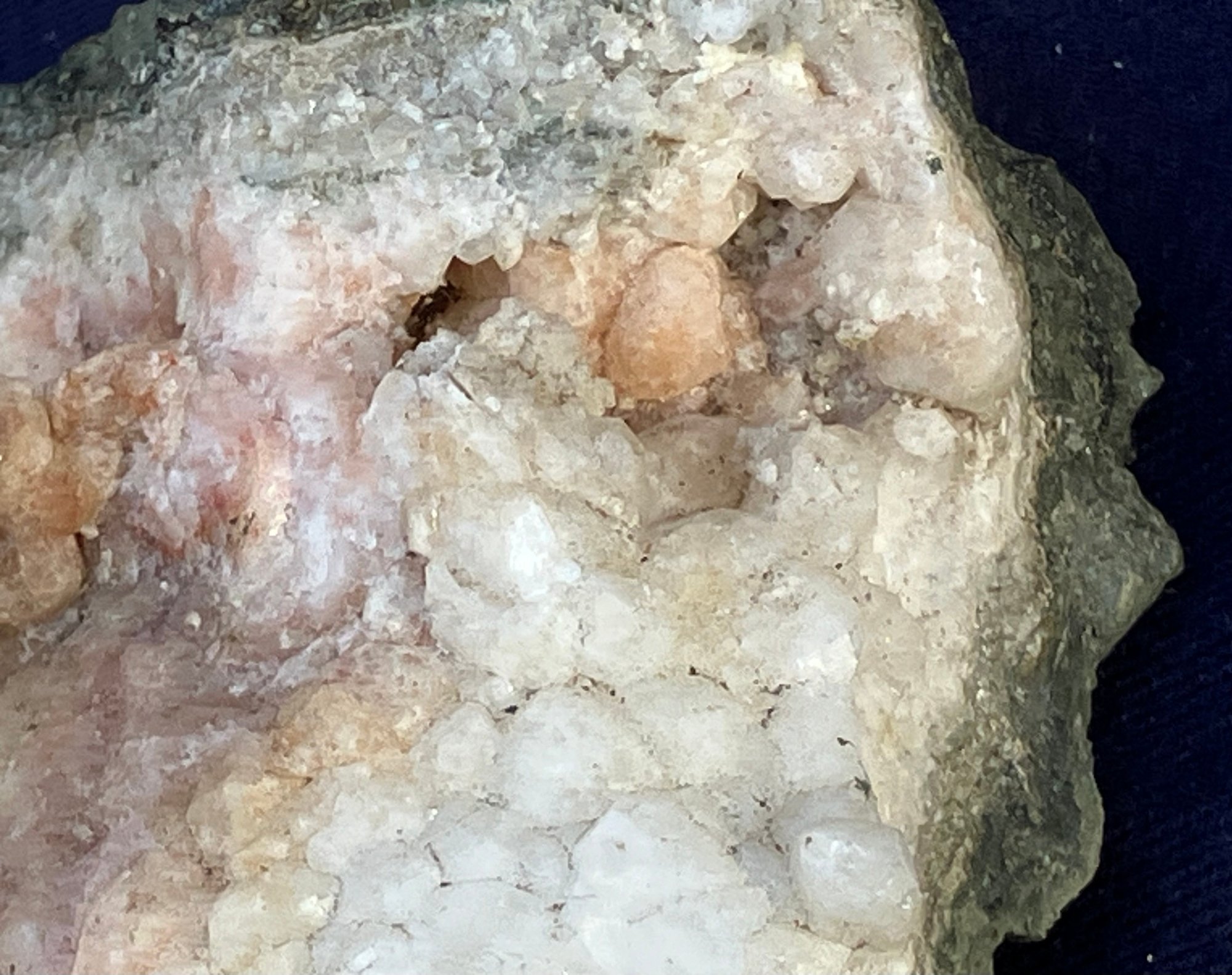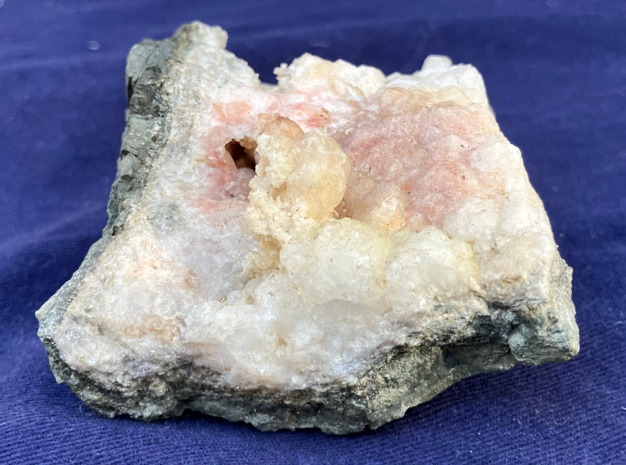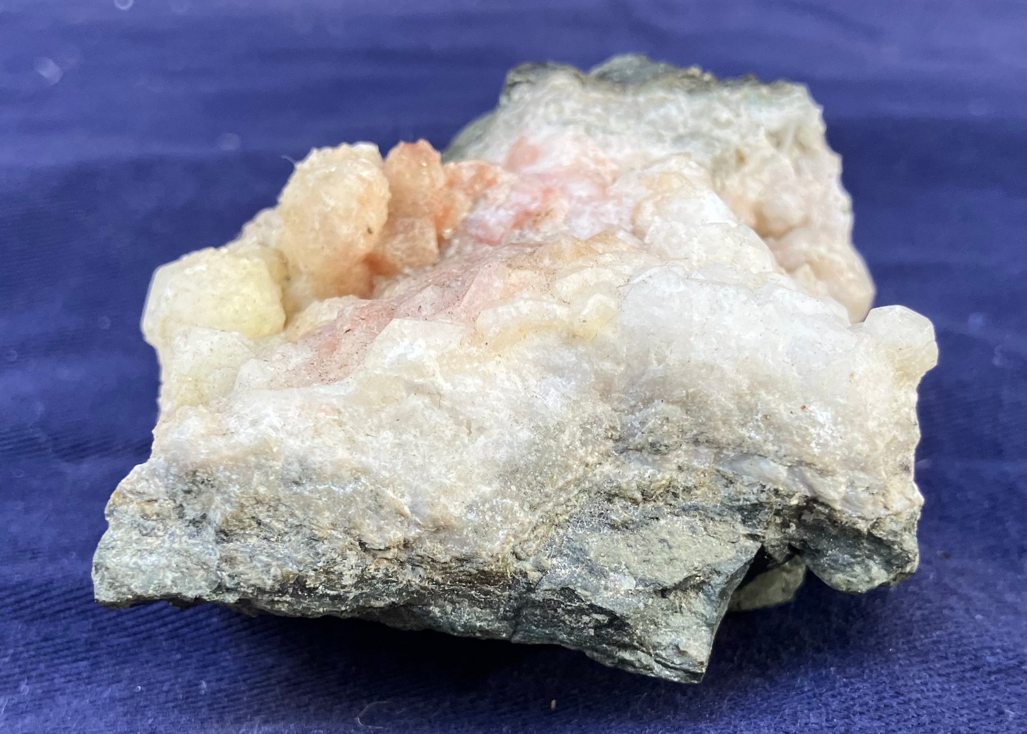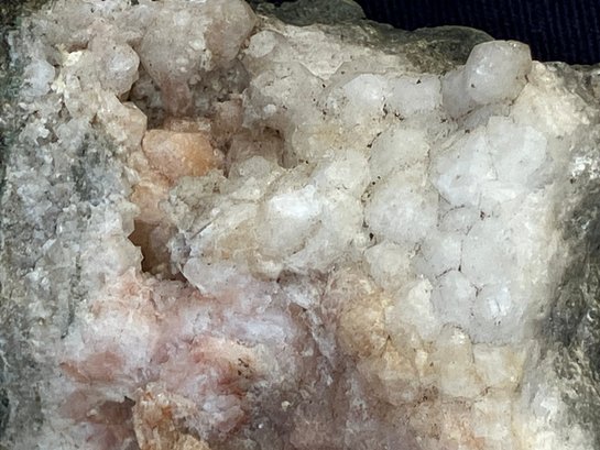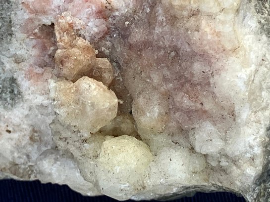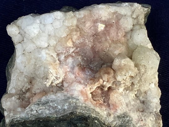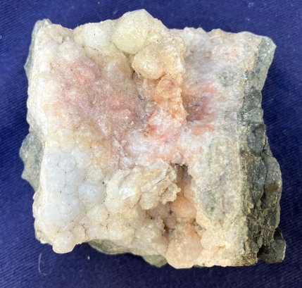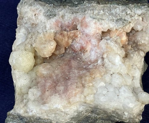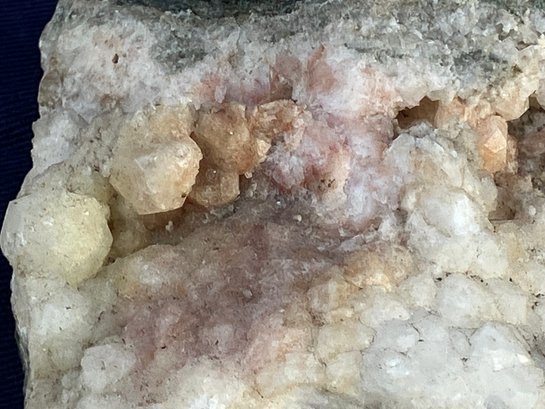 Crystals are white, yellow & dusty rose. Measures: 1 1/4” tall x 2 1/2” wide x 2 1/2” long. Weighs: 5.7 ounces.