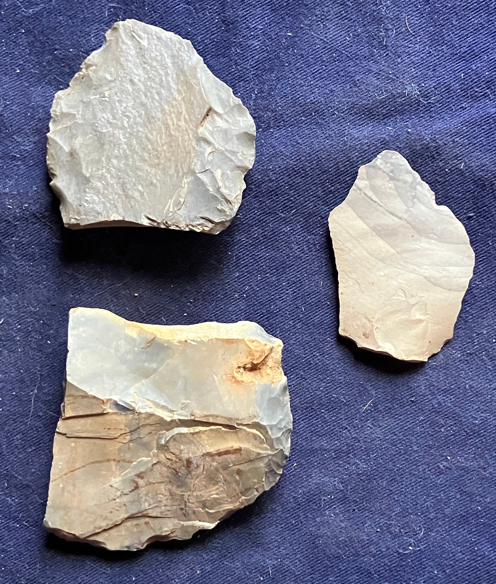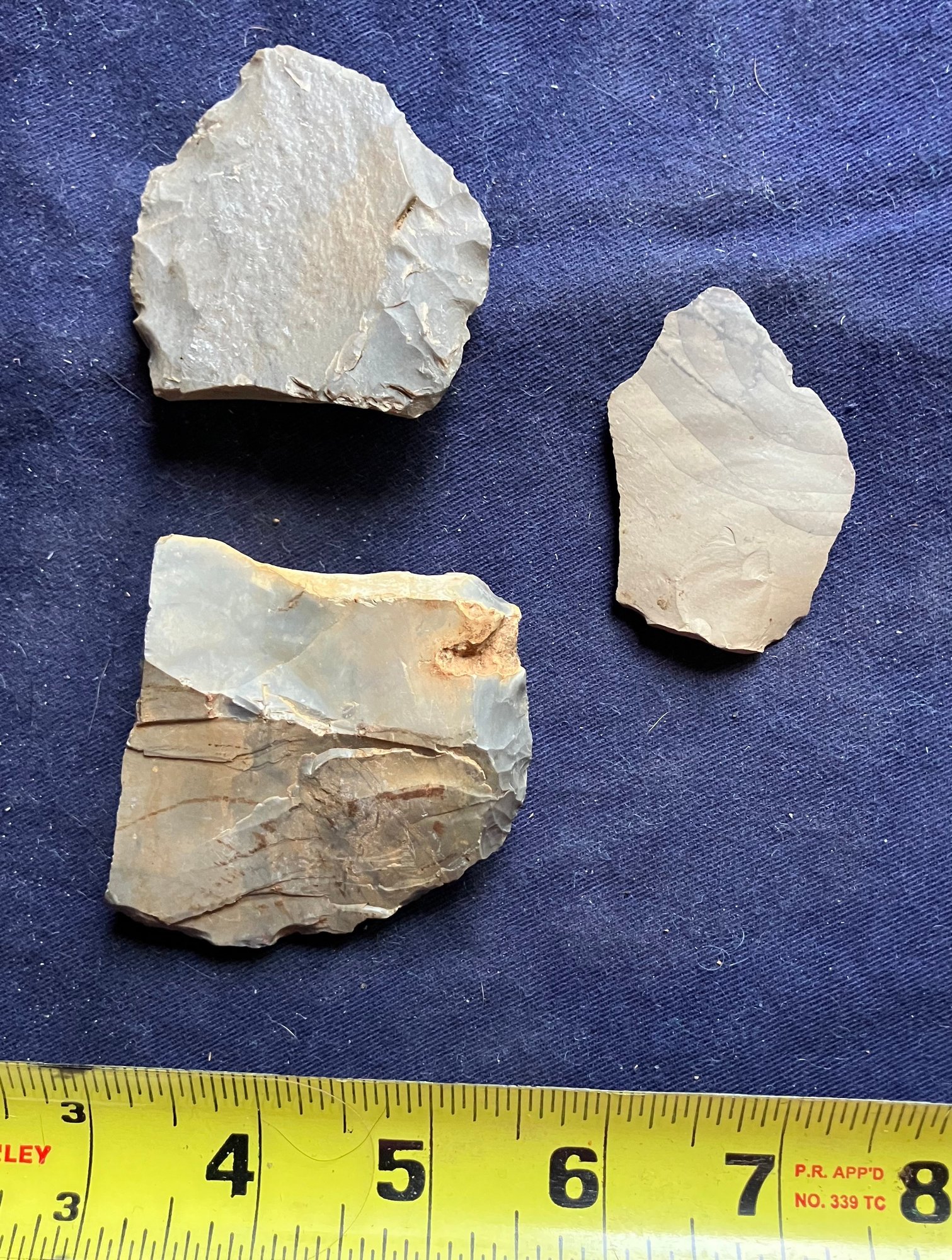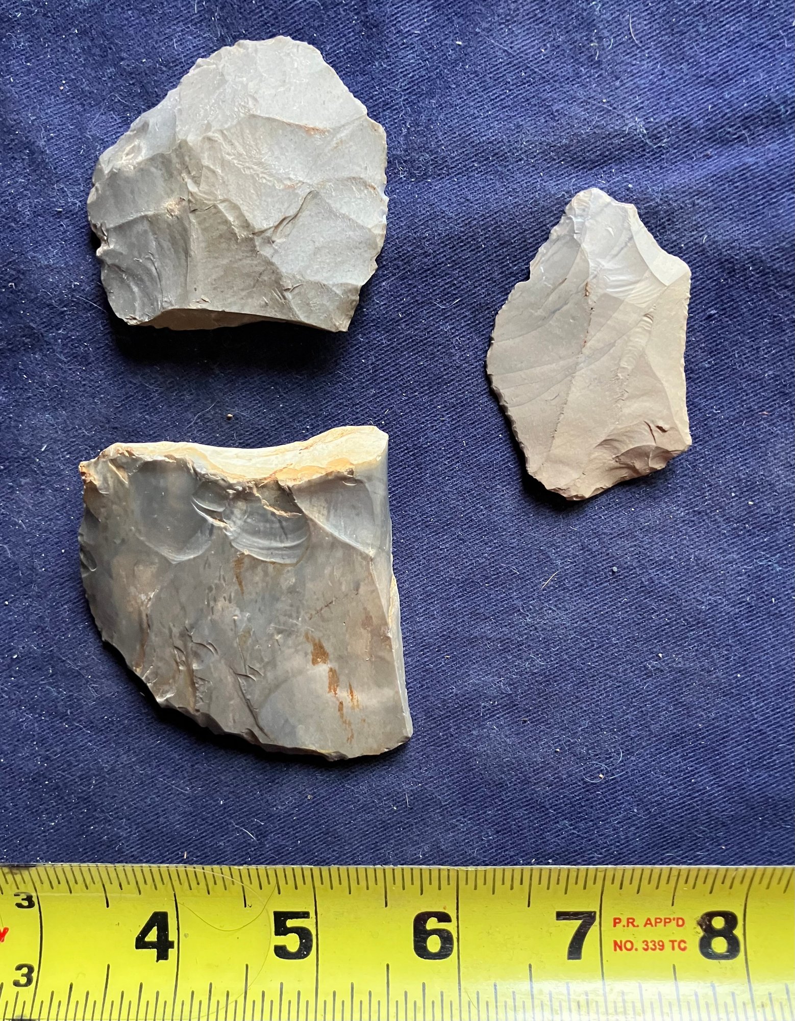 Found at a Native American dig site. Made of chirt. Broken points repurposed as scrapers.