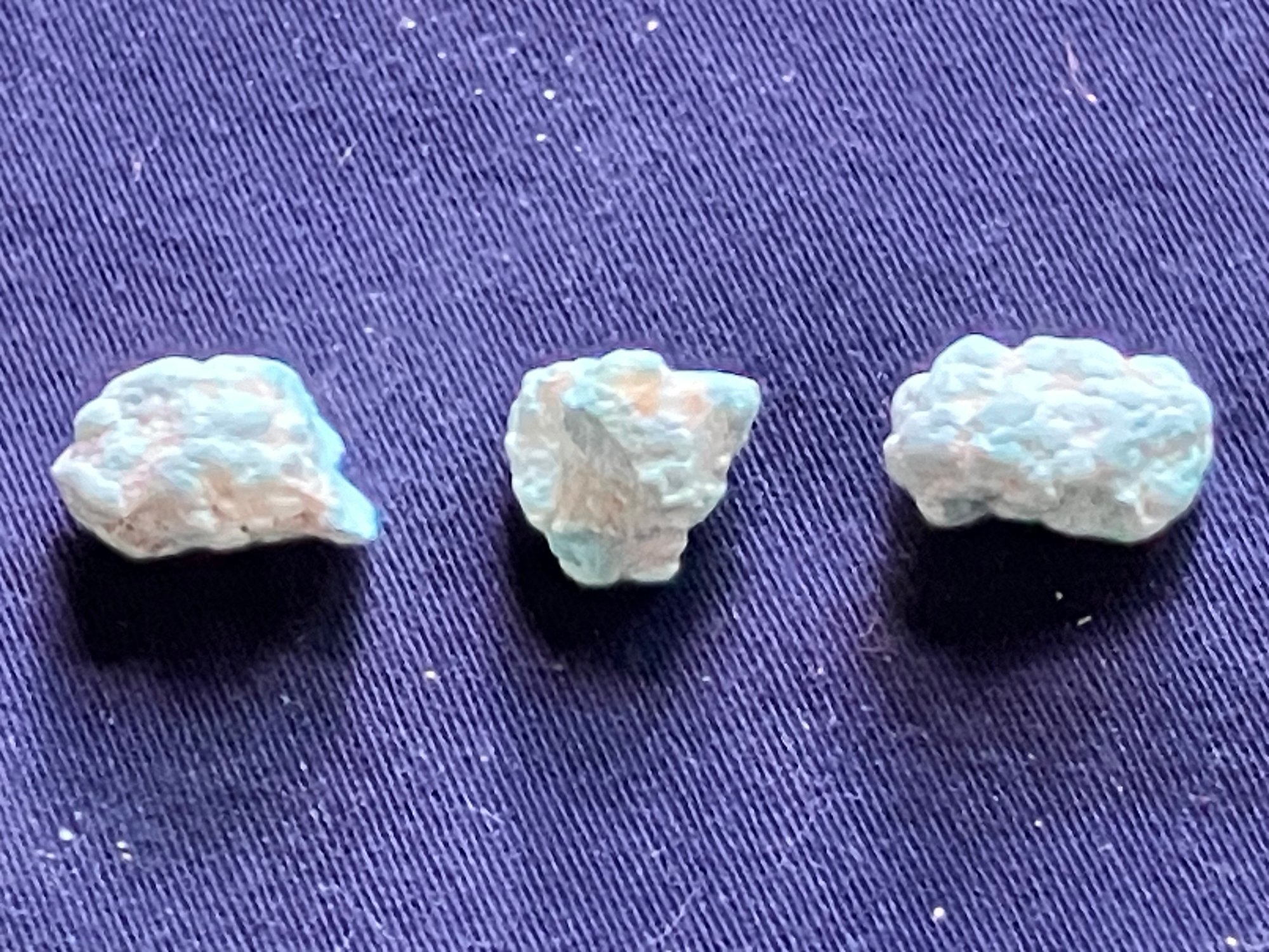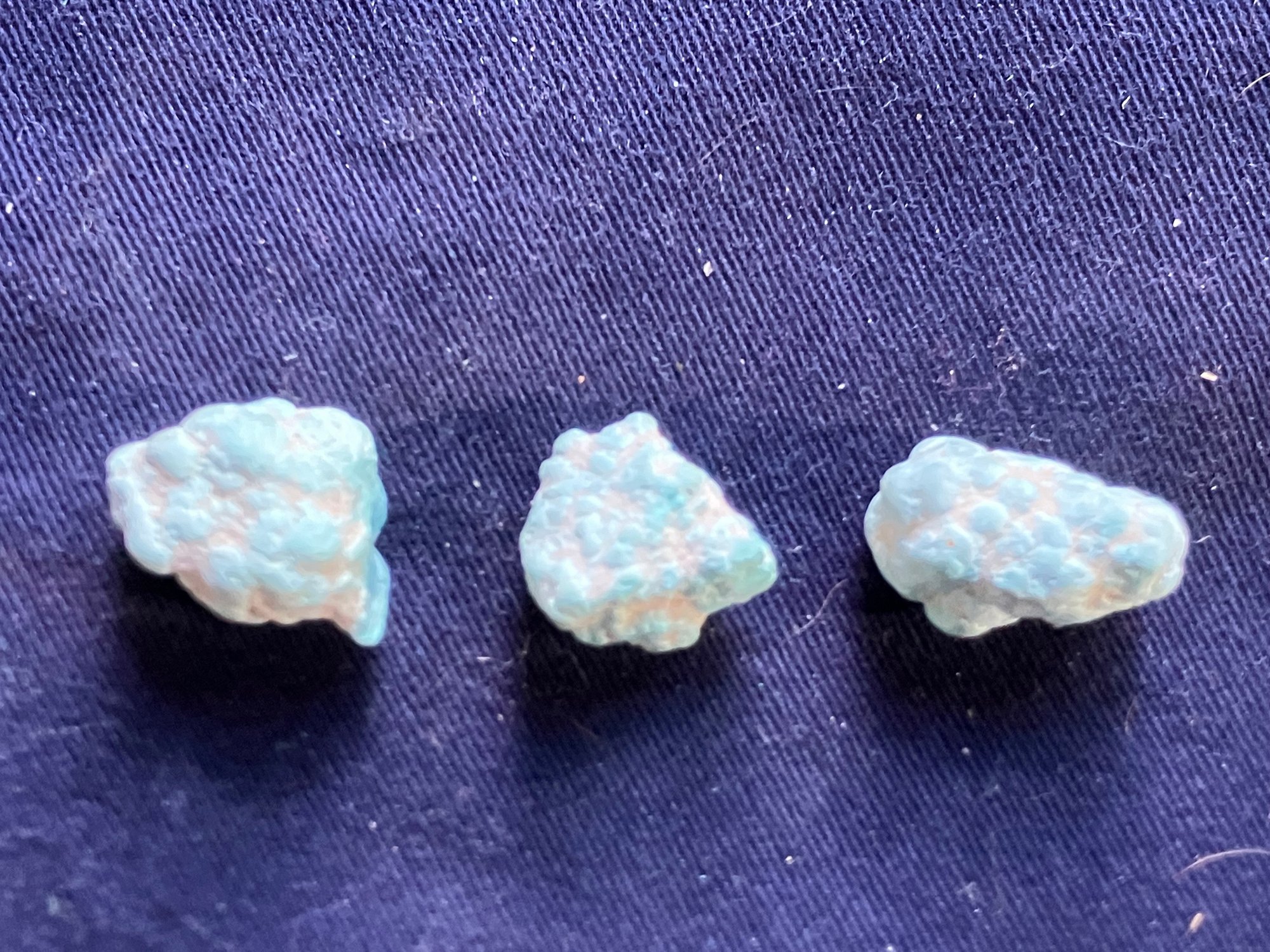 Three Turquoise specimens from the Sleeping Beauty Mine from Globe, Arizona.