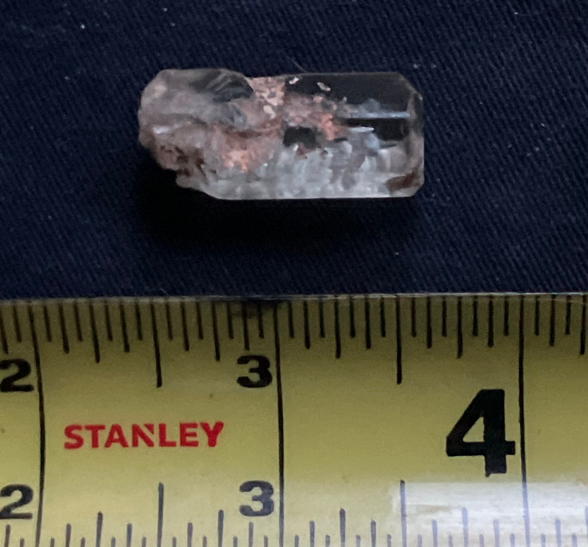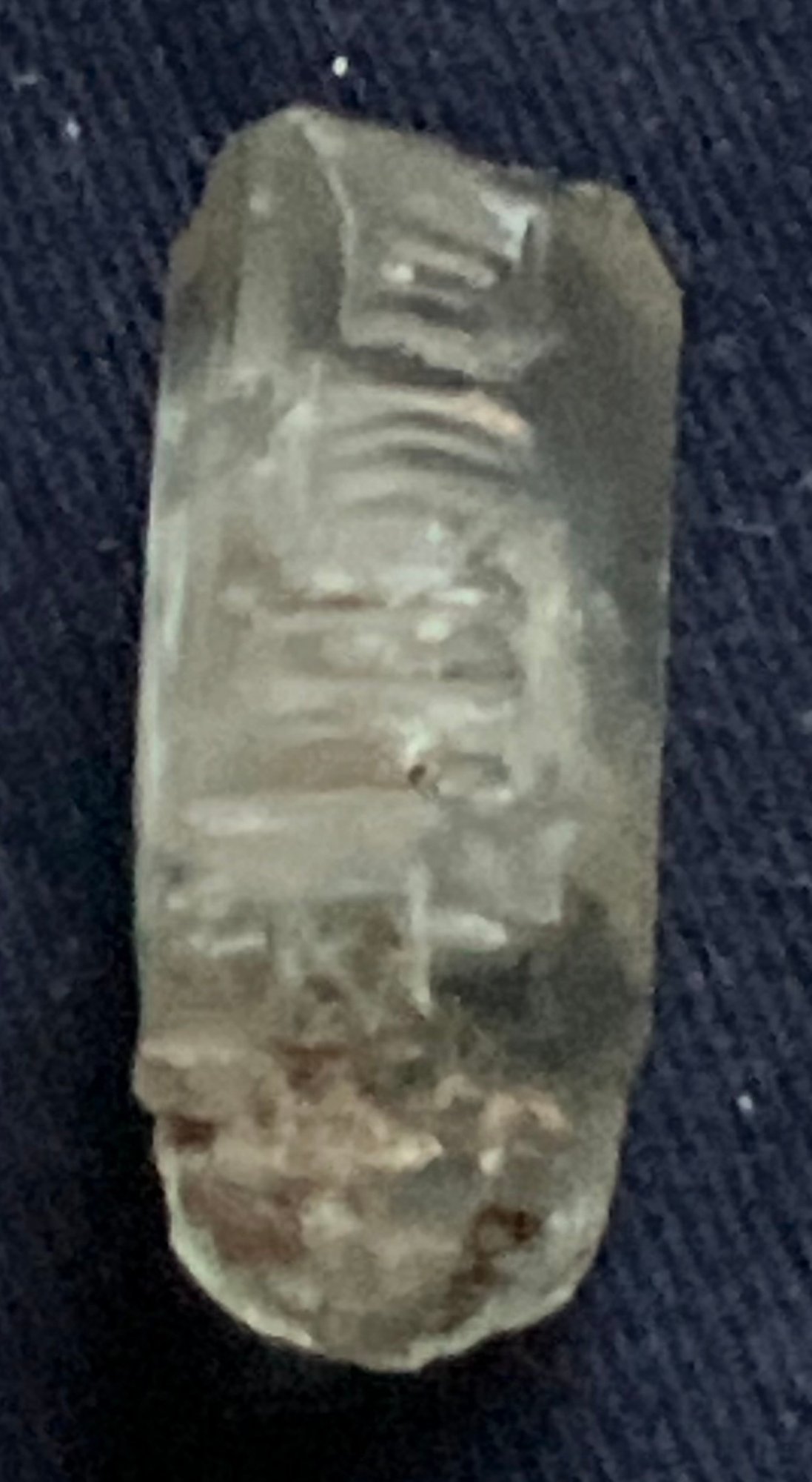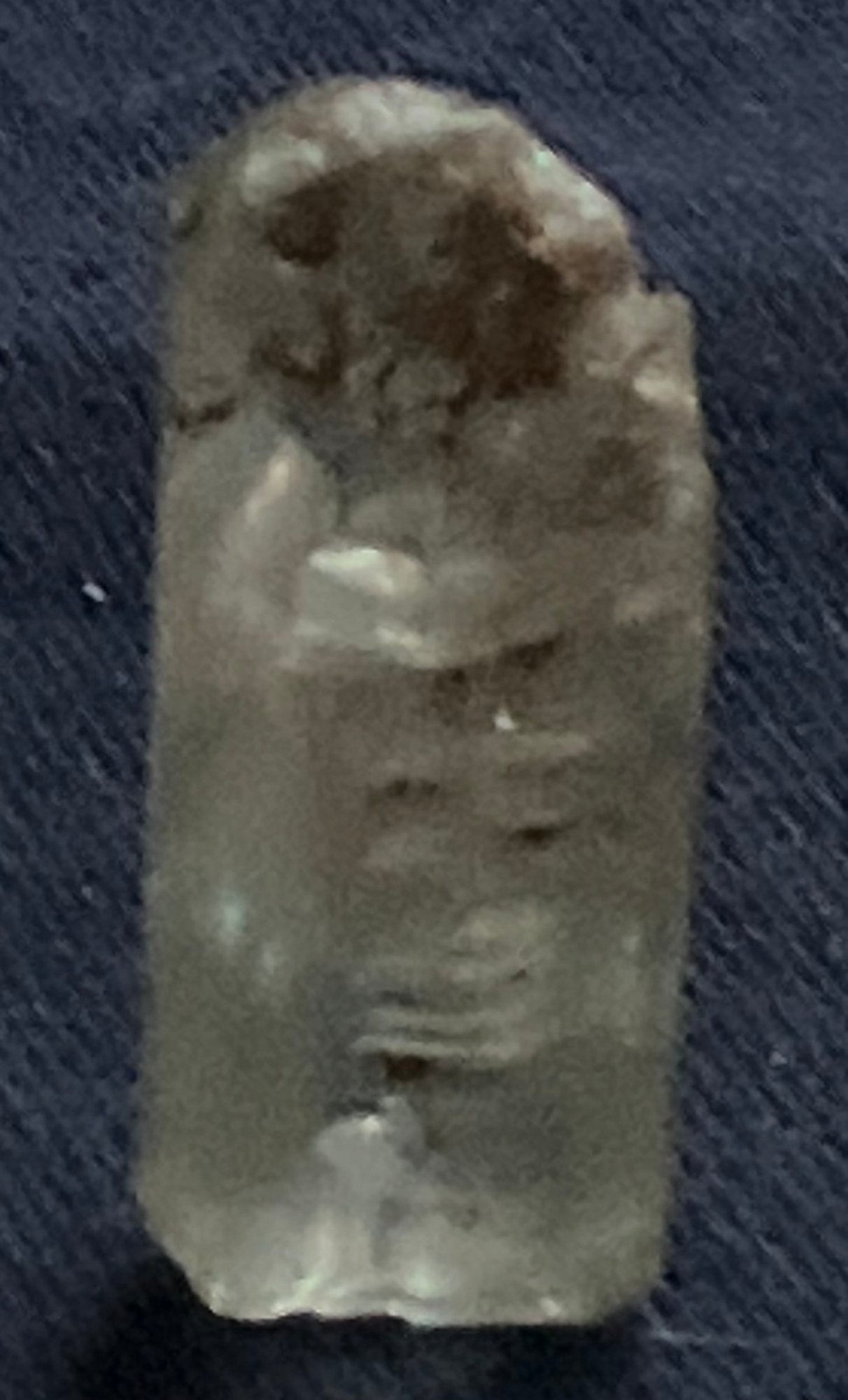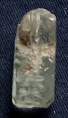 It is a Topaz crystal with facets and terminations. It has a slight blue green color to it.