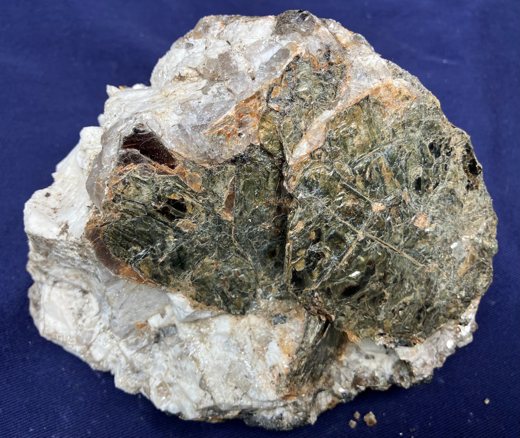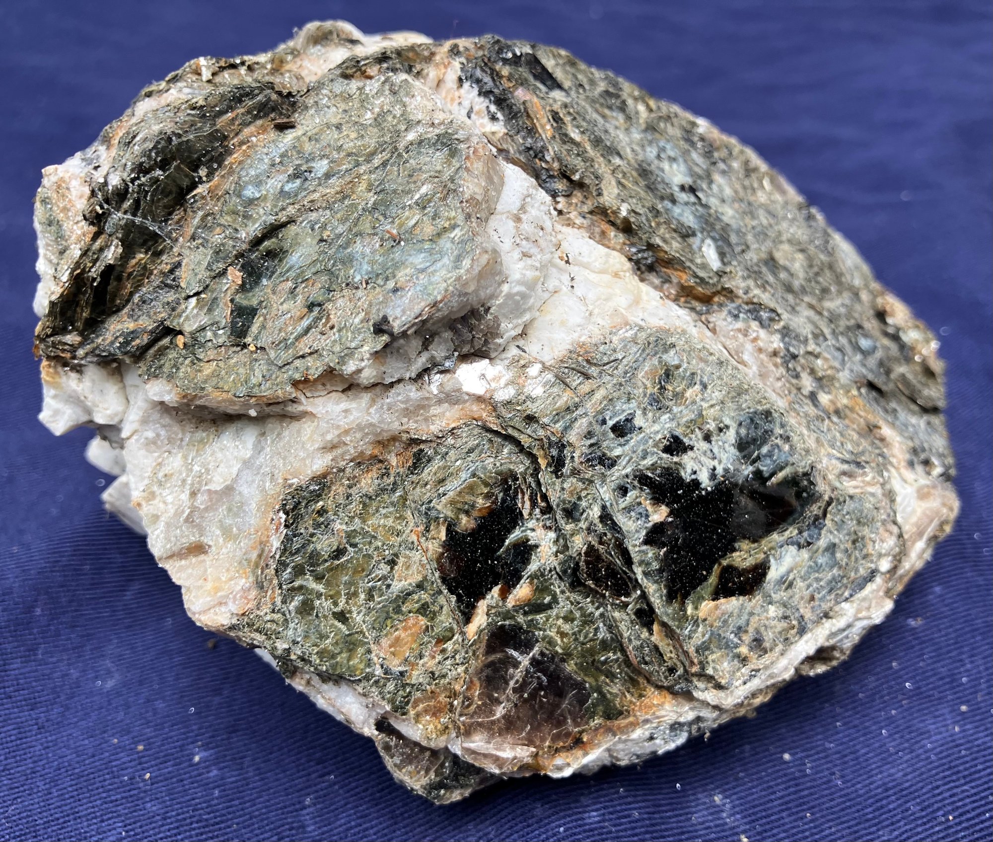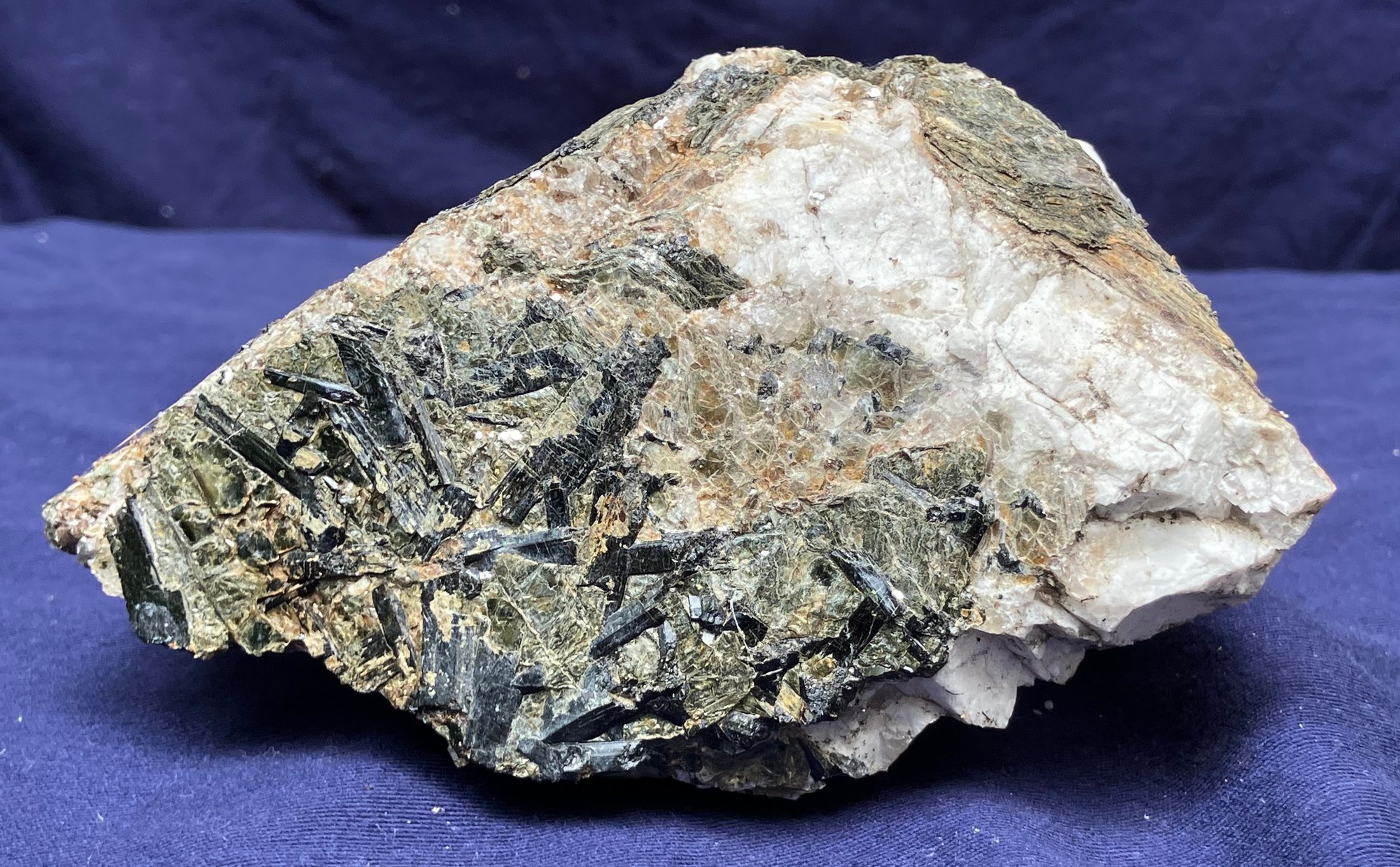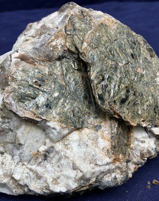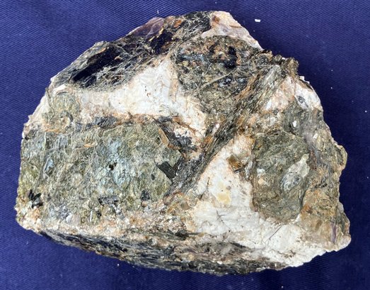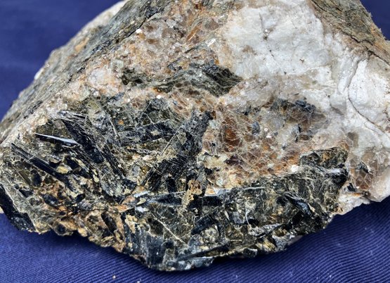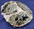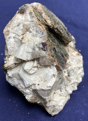 Tourmaline crystals growing between the Muscovite sheets. Measures: 4 1/2” long x 4” wide x 4” tall. Weighs: 2 pounds 2 ounces.