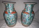 Two Familie Rose Dragon Vases 14.5“ High 1920’S-1940’S Porcelain. Good condition.