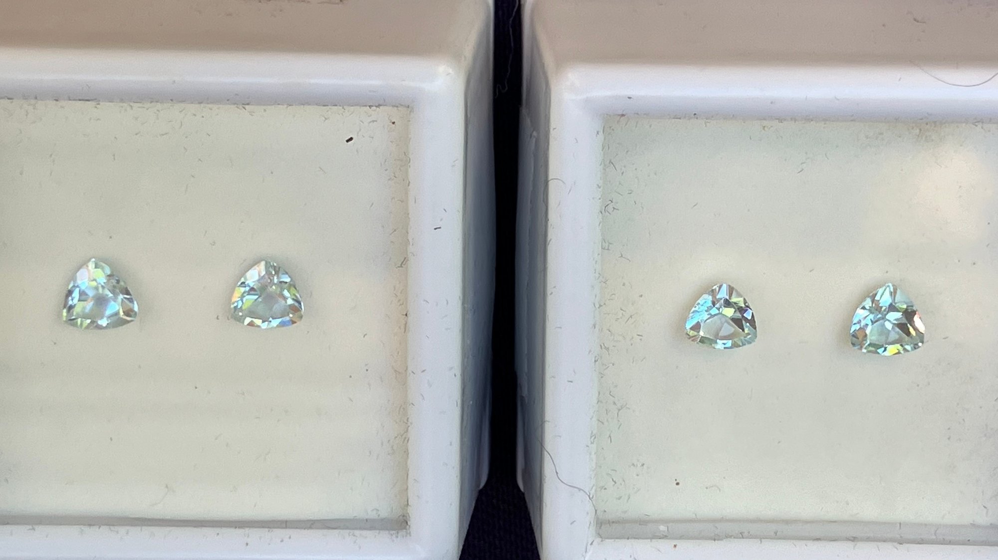 Each pair is .95 ctw, size 5.5mm trillion cut.
