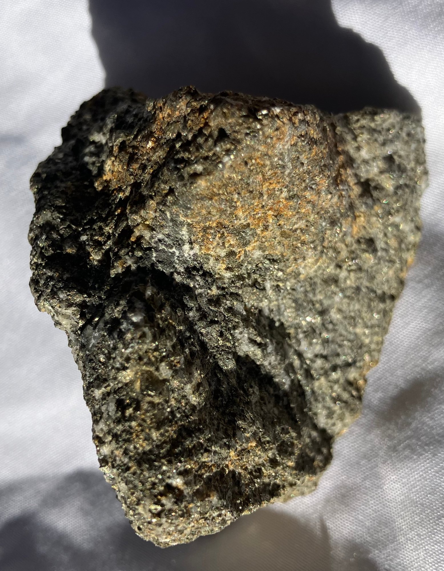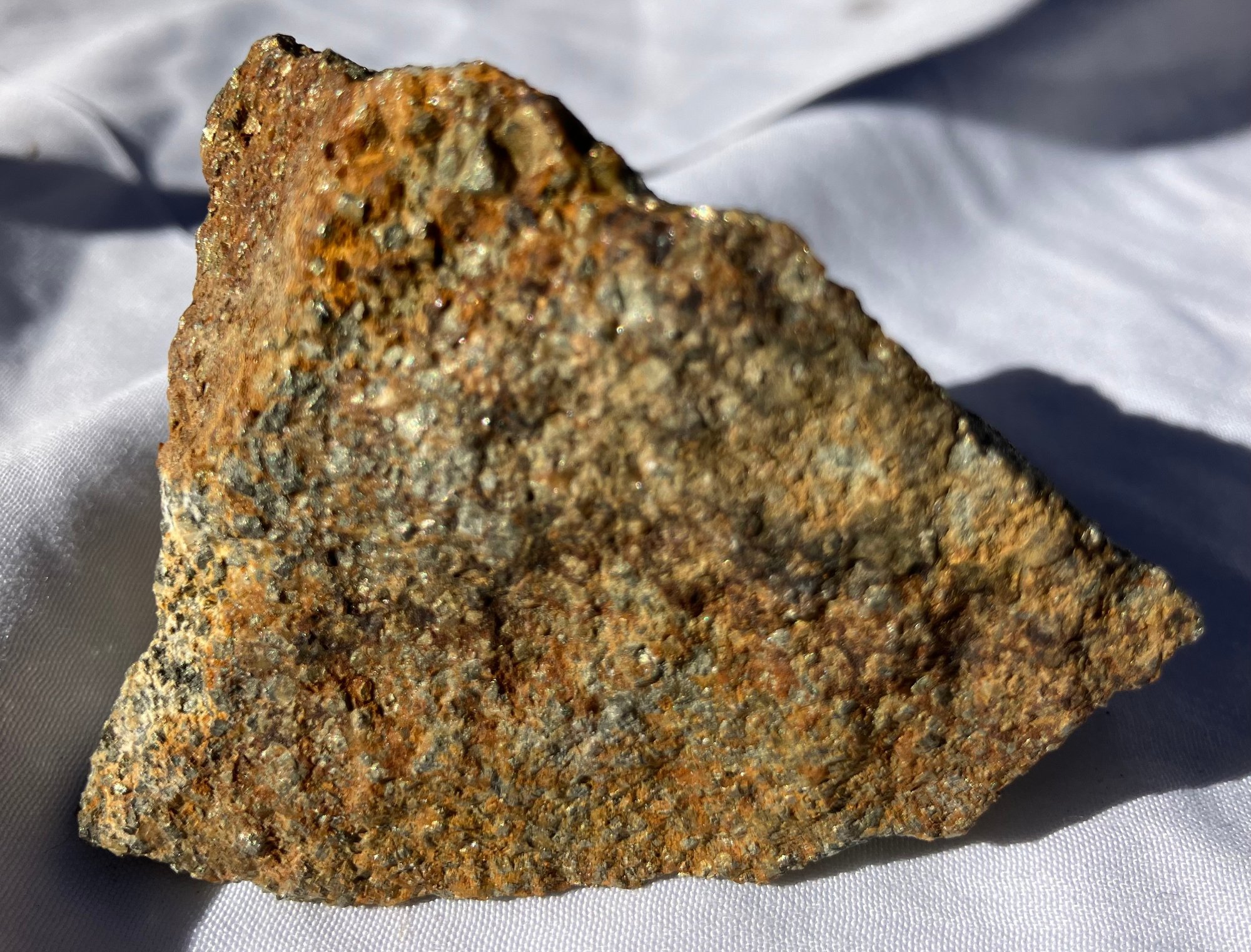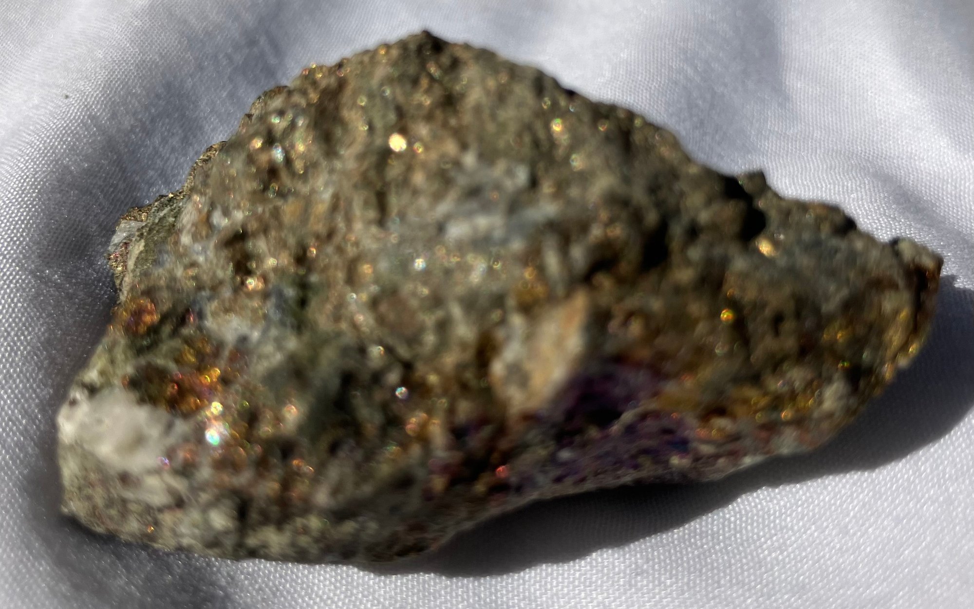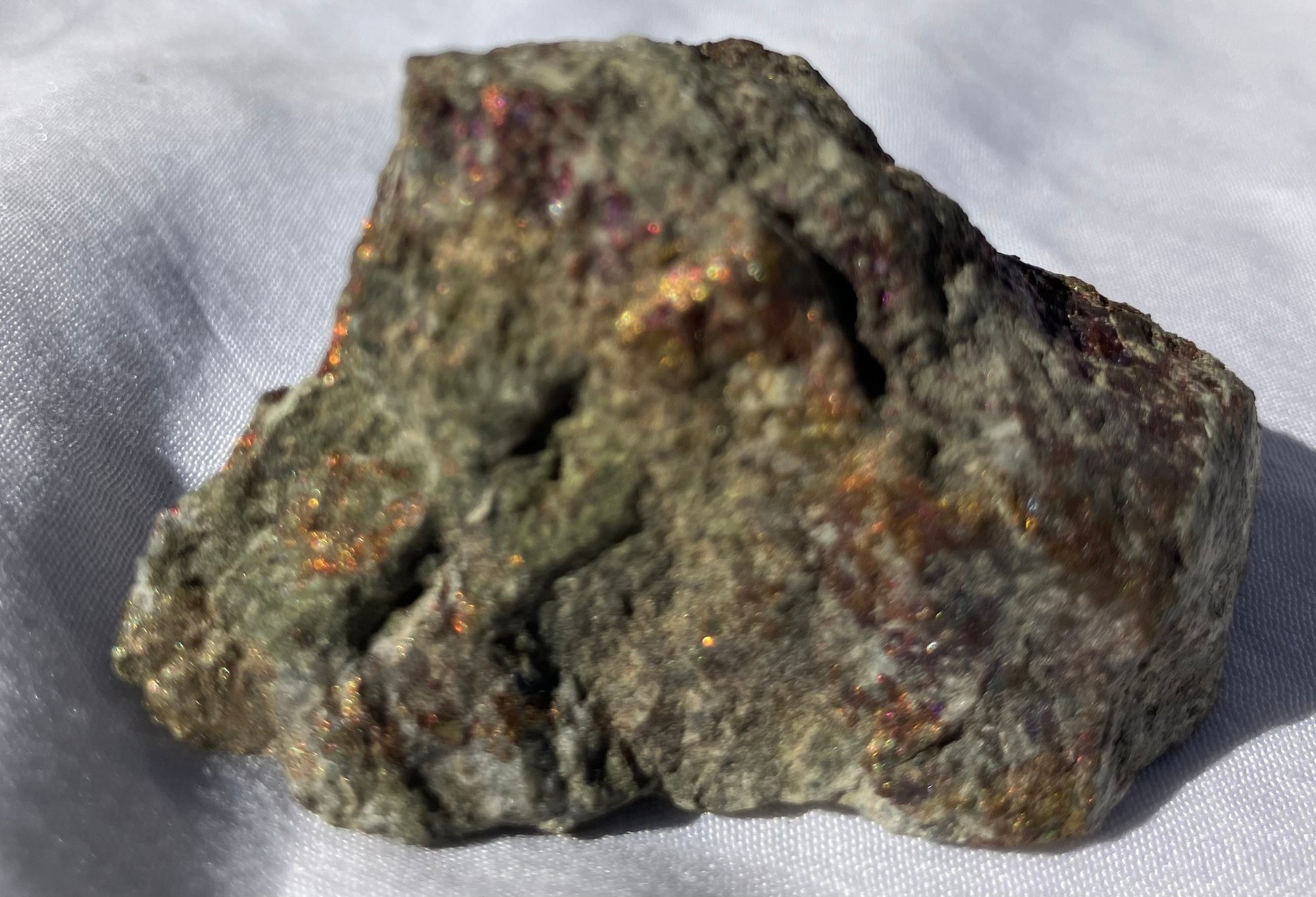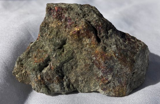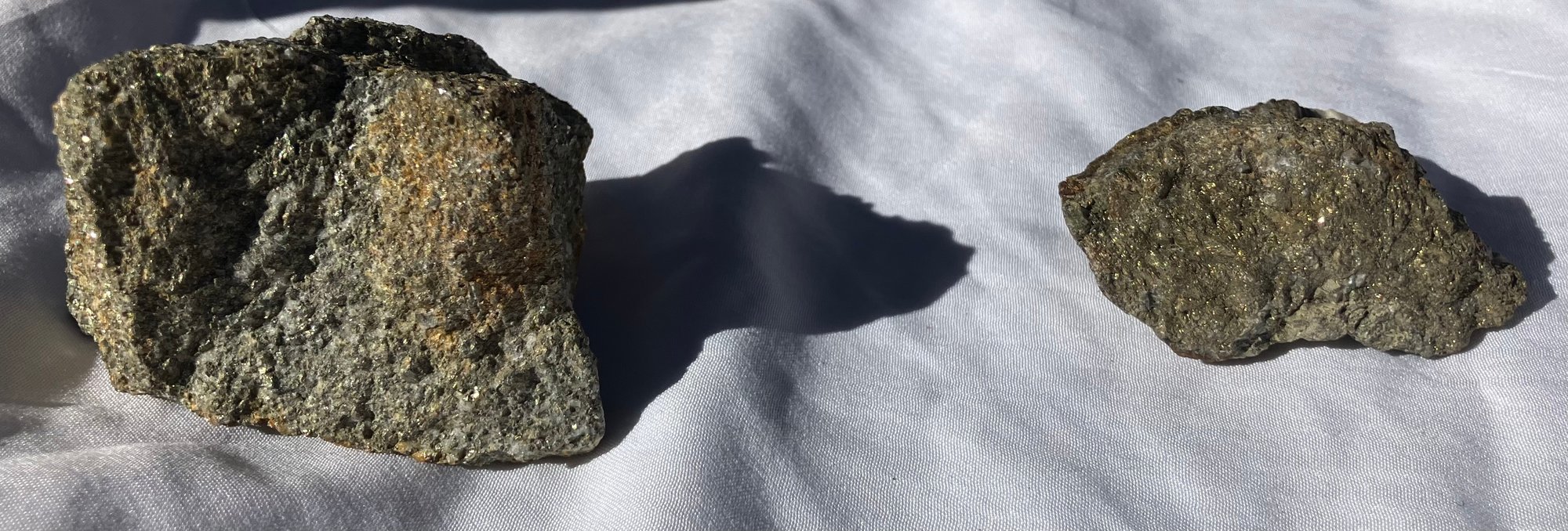Smaller piece has peacock tint to half of it. Larger piece measures: 1 1/4” tall x 1 7/8” wide x 2 1/2” long & smaller piece measures: 1” tall x 1 1/8” wide x 2 1/4” long. Larger piece weighs: 5.5 ounces & the smaller piece weighs: 2.0 ounces.