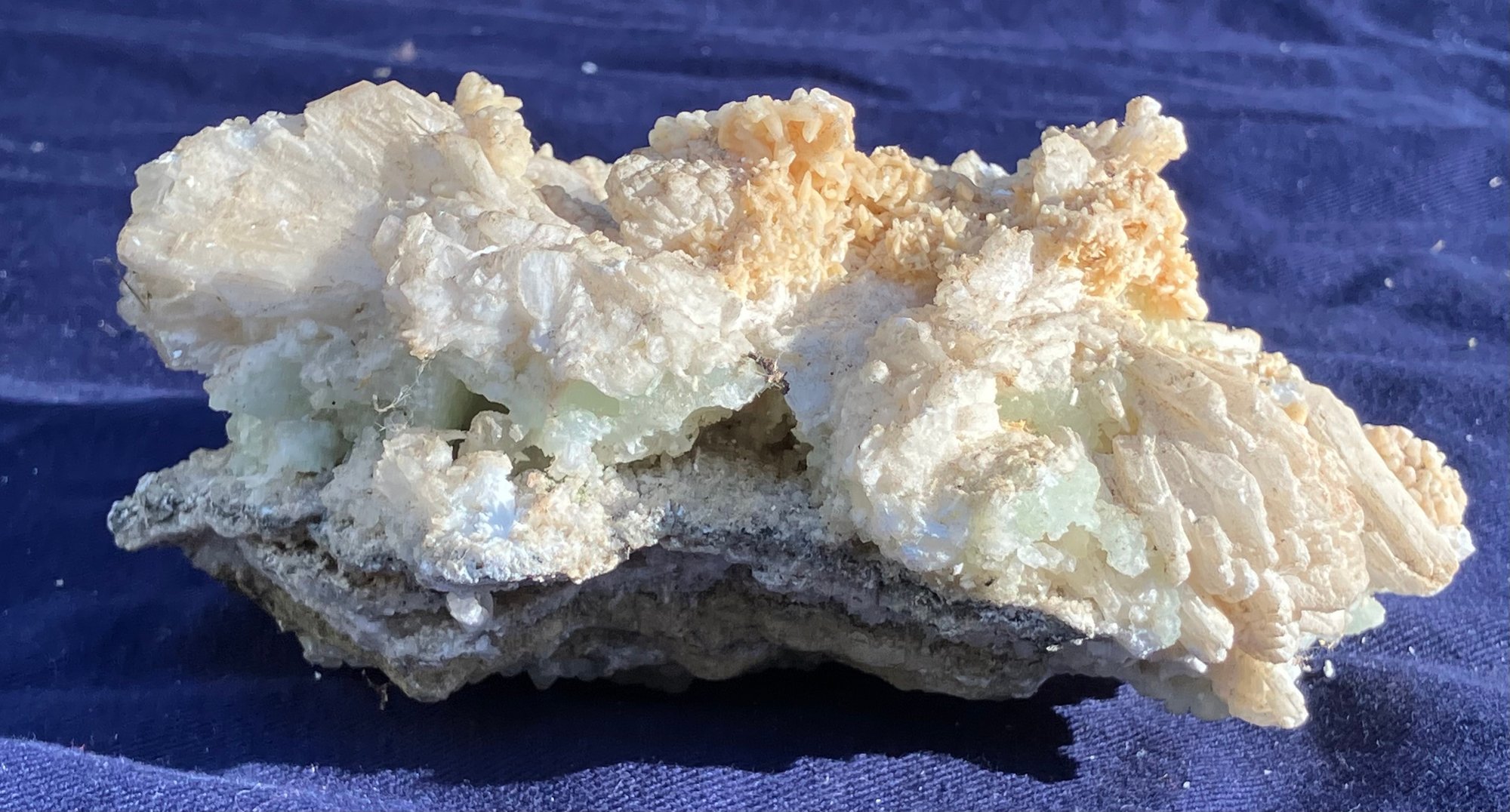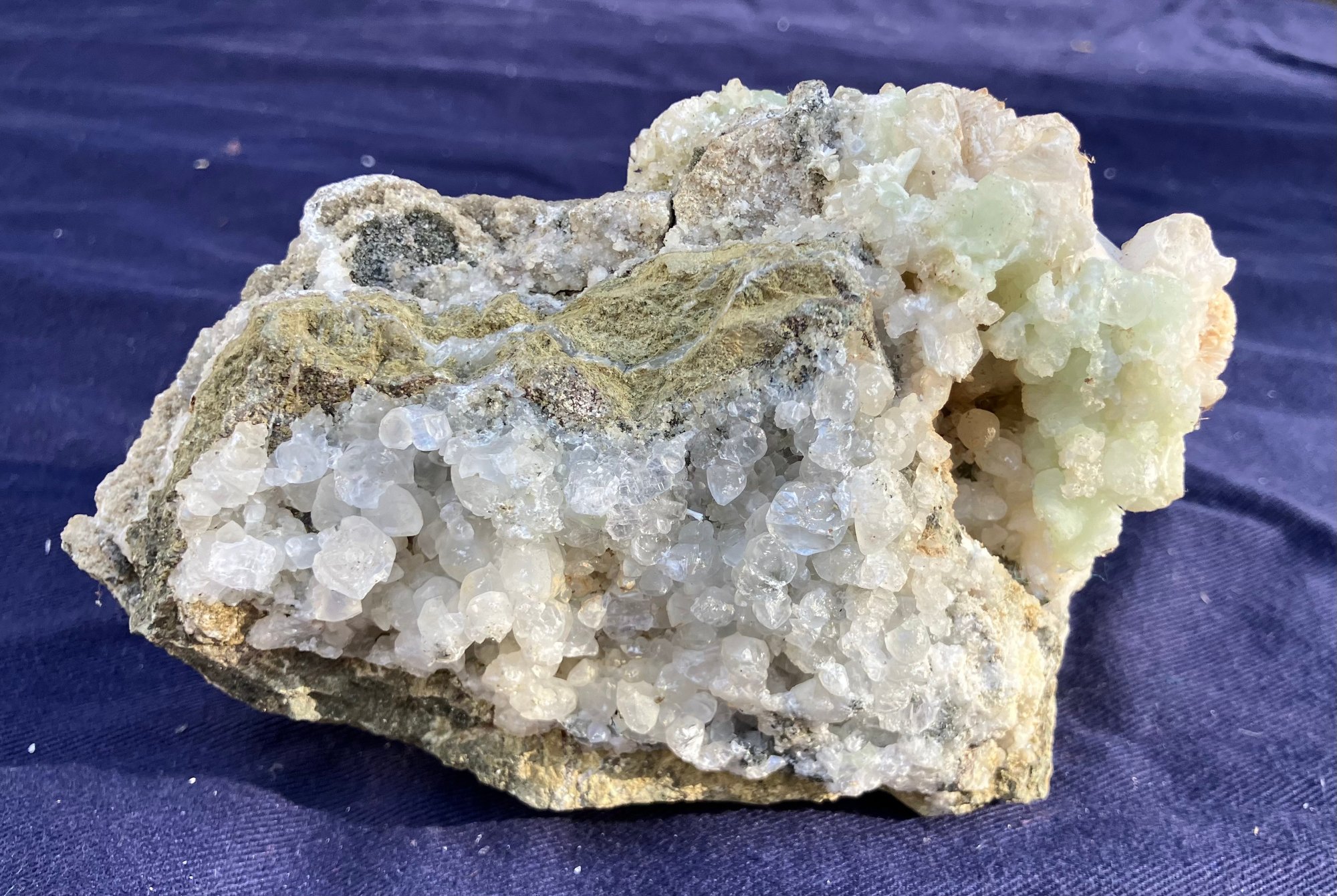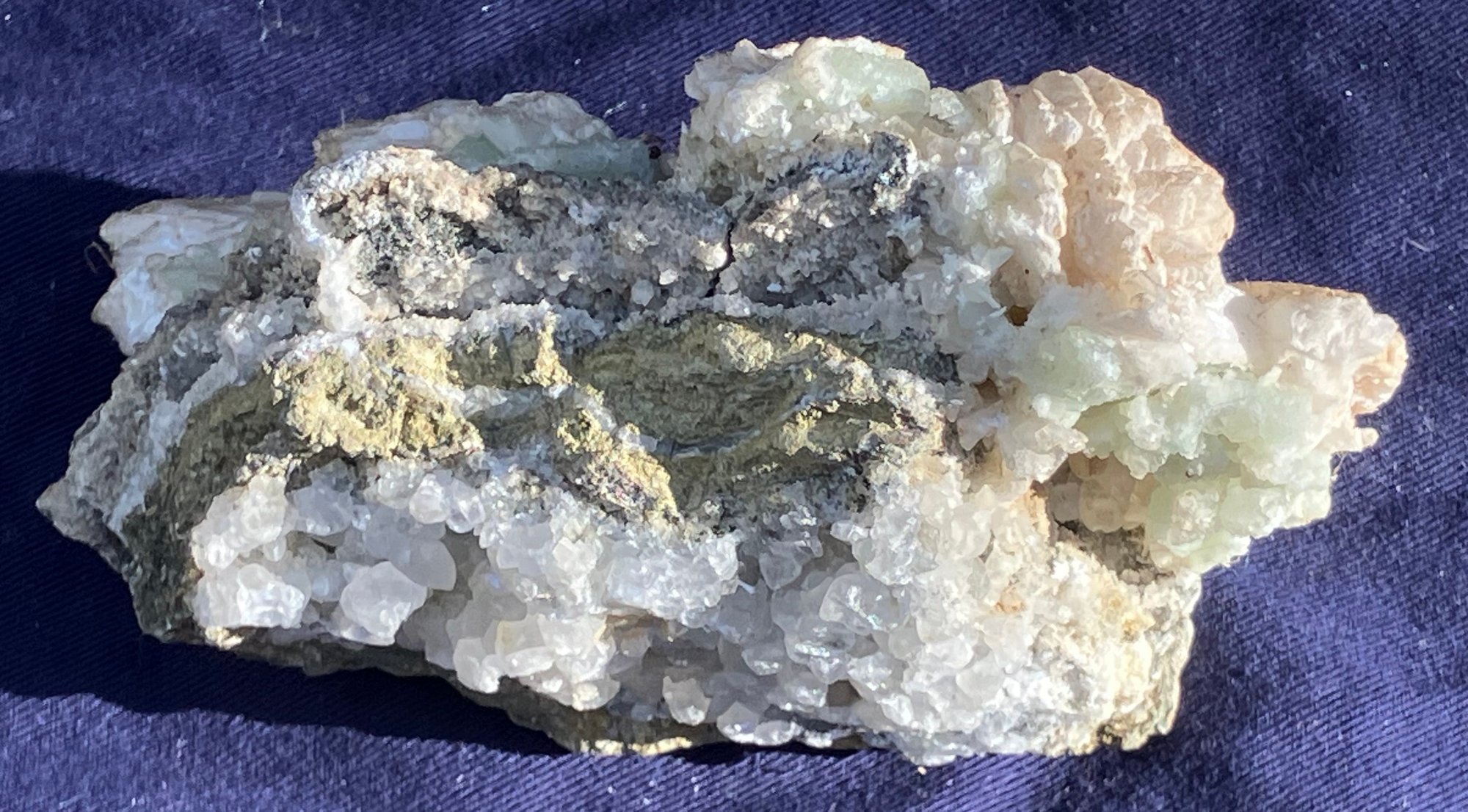 Pink and green throughout. Good crystal structure. Colors are layered. Measures: 2 1/4” tall x 3” wide x 5” long. Weighs: 14.3 ounces.