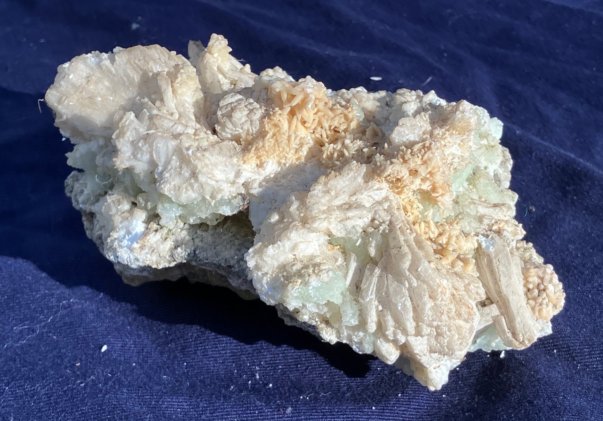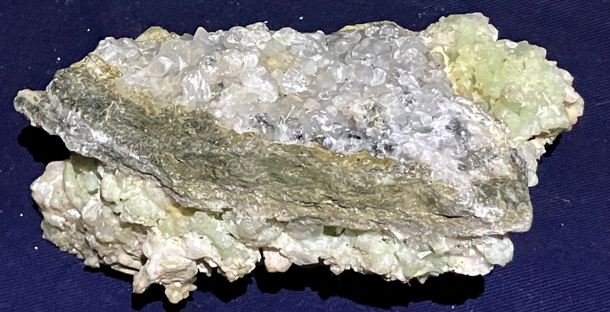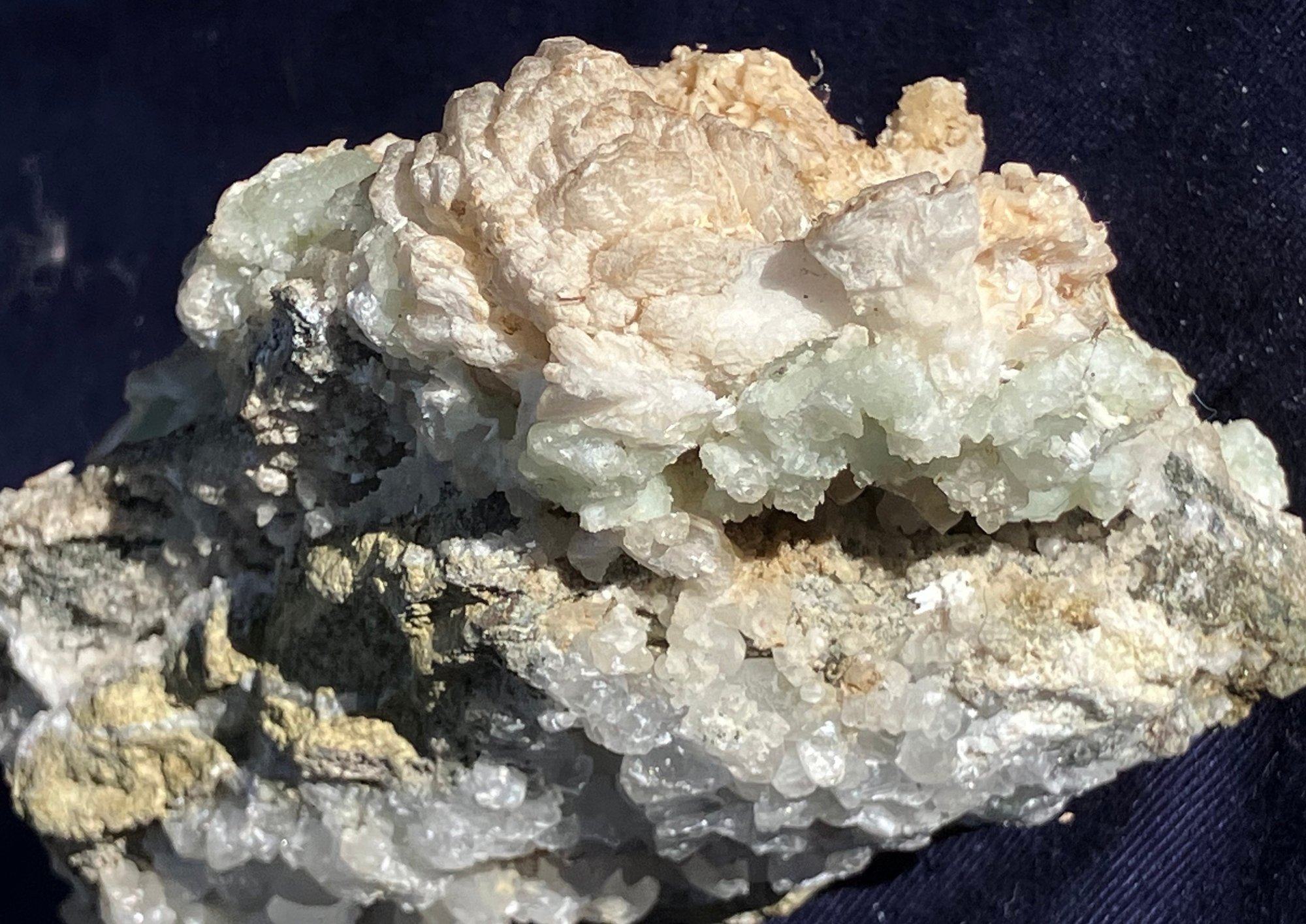 Pink and green throughout. Good crystal structure. Colors are layered. Measures: 2 1/4” tall x 3” wide x 5” long. Weighs: 14.3 ounces.
