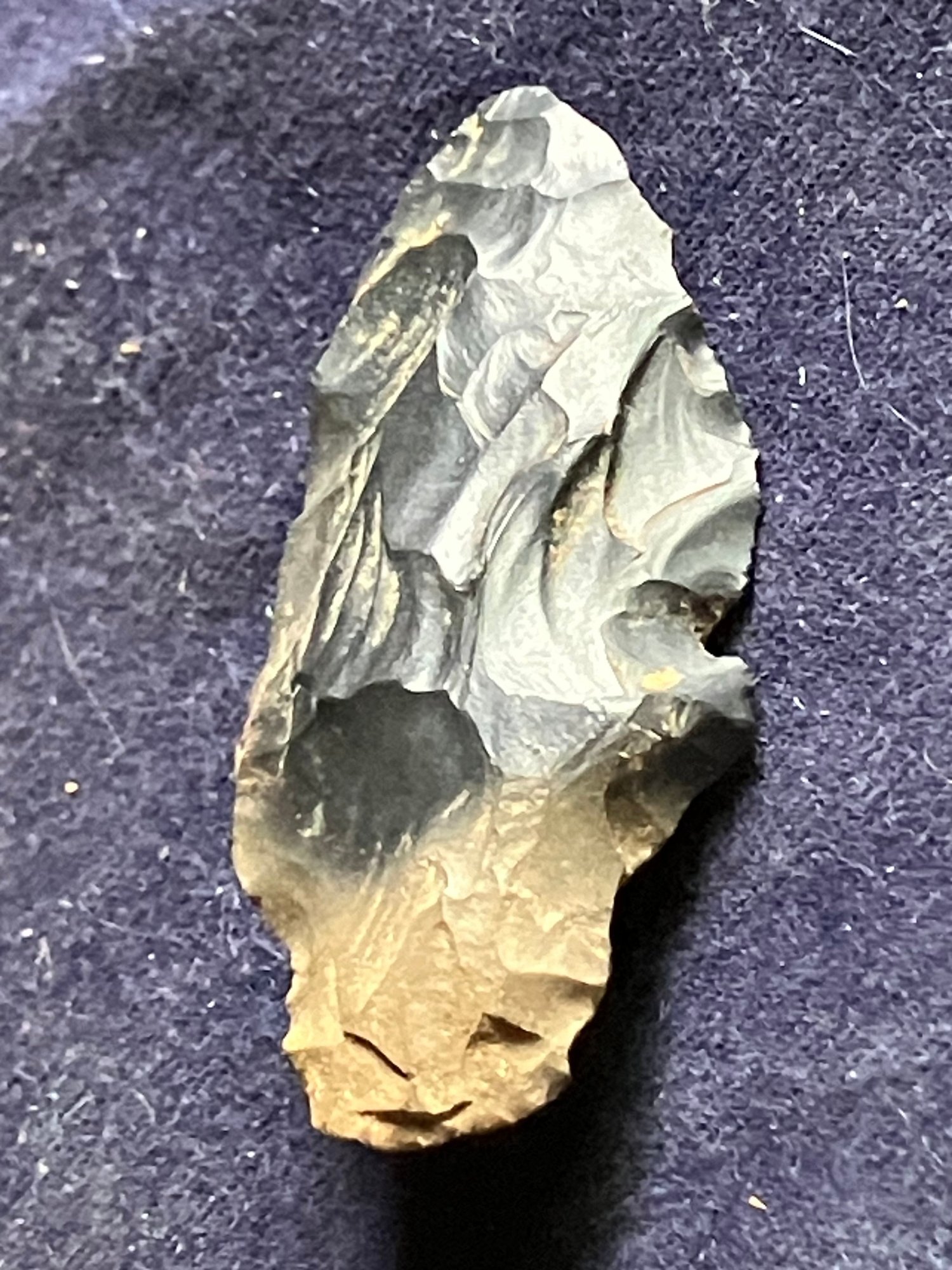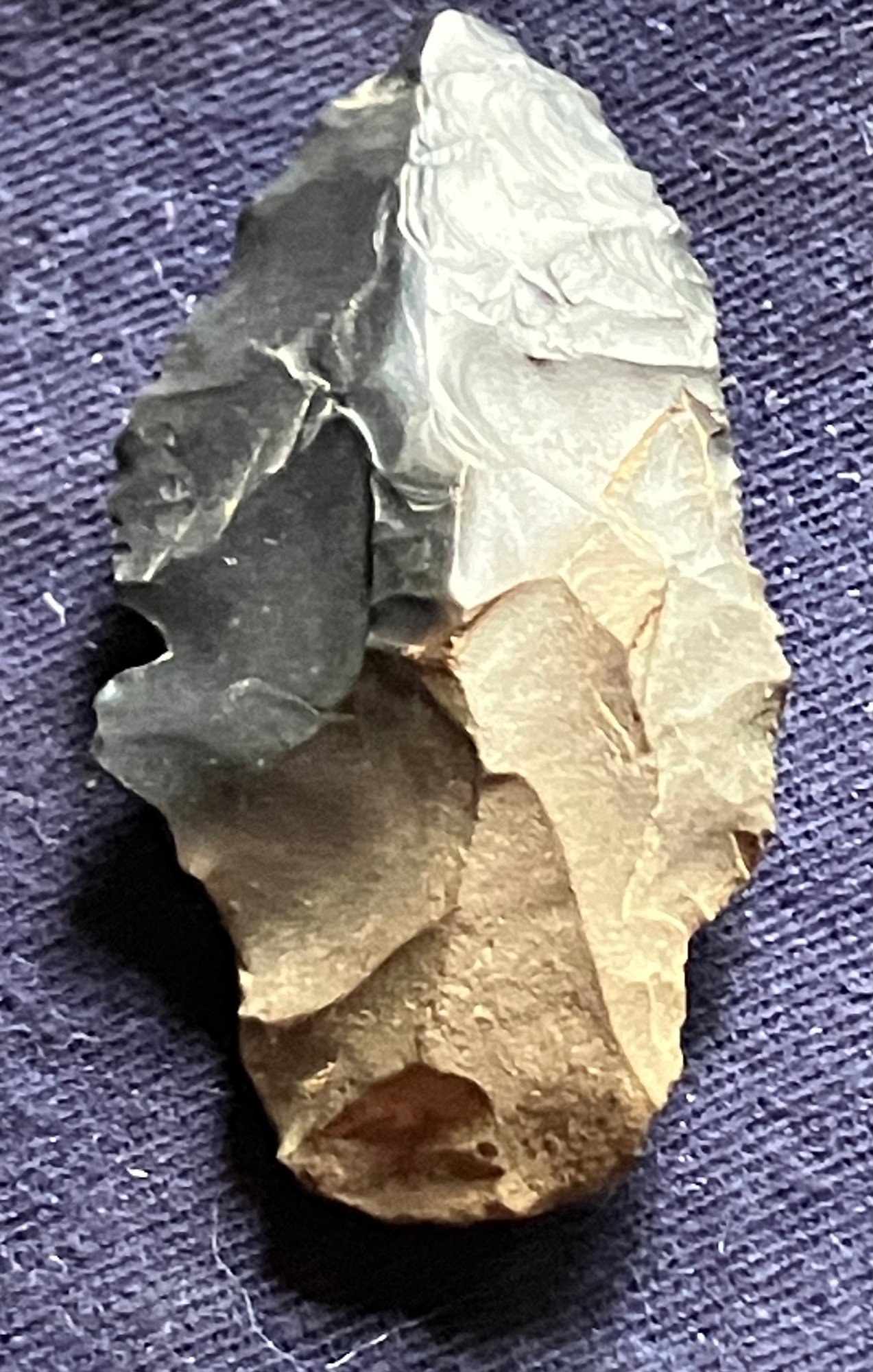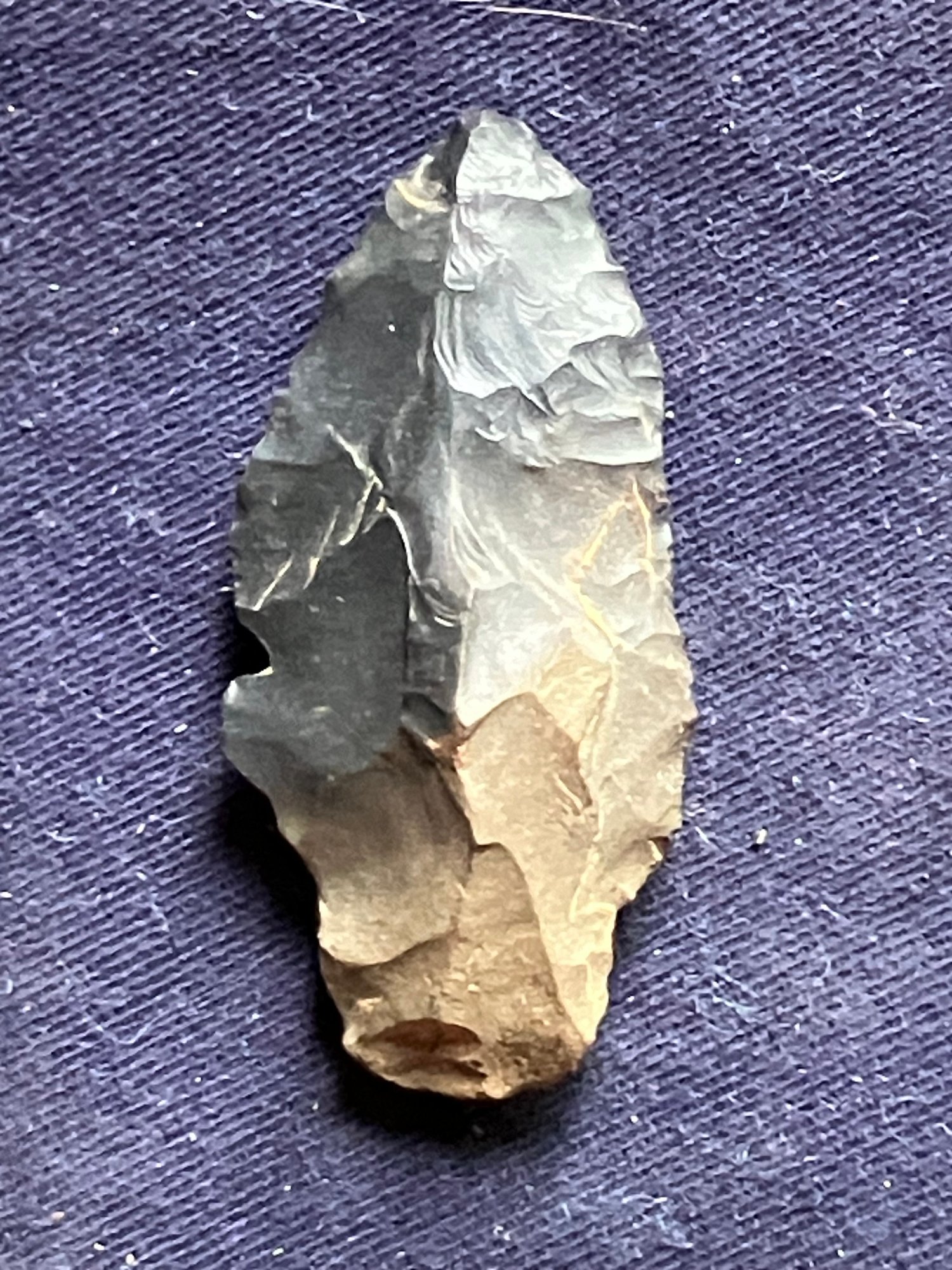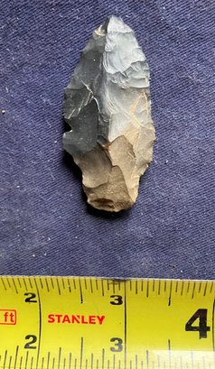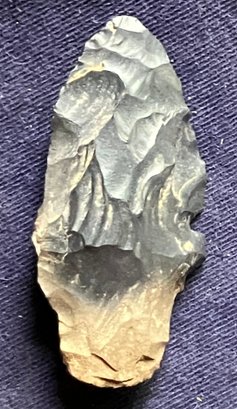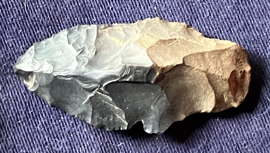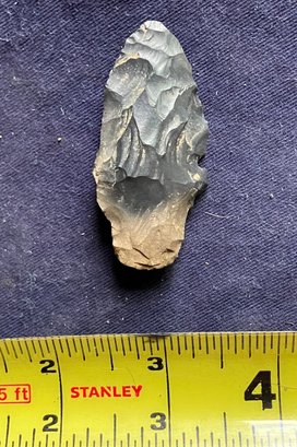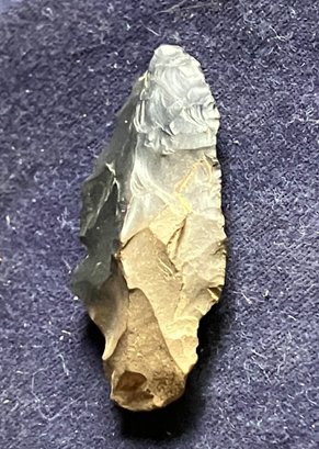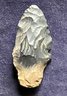 Found at a Native American dig site. Made of chirt. Bi-facial projectile point with rare notch on one side. Excellent condition.
