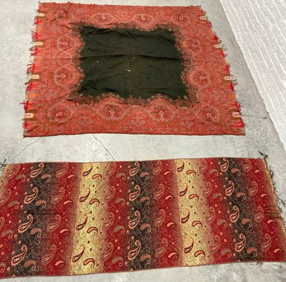 Womens shawls. Dimensions are: 60” square and 67” tall x 27!1/2” wide. Condition: Some holes in black and red shawl. See photos.