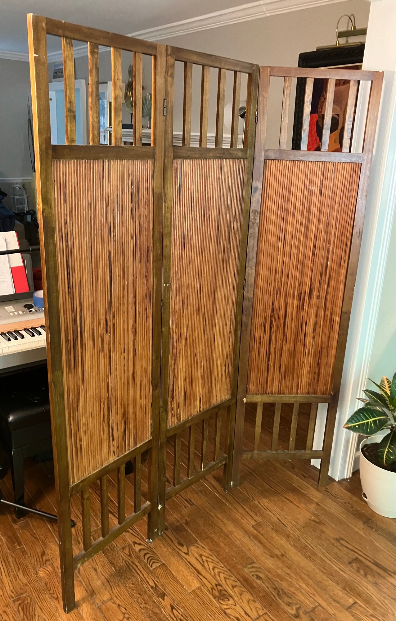 Wooden divider screen. Dimensions: 70” tall x 52” wide. Good condition.