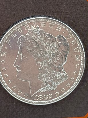 1882 uncirculated condition Morgan silver dollar 90% solid silver. Comes in holder with stamp and story . We work with UPS to get your purchases shipped. We drop off your order and they contact you . You pay them directly and they deliver to your address.