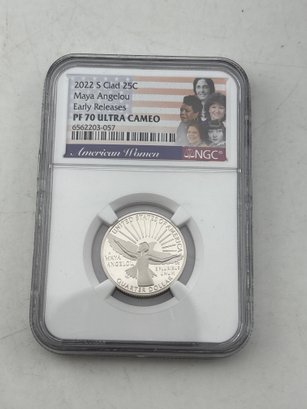 2022 S quarter clad . Maya Angelou quarter. A beautiful ultra cameo coin slabbed at the highest possible grade PF 70 .