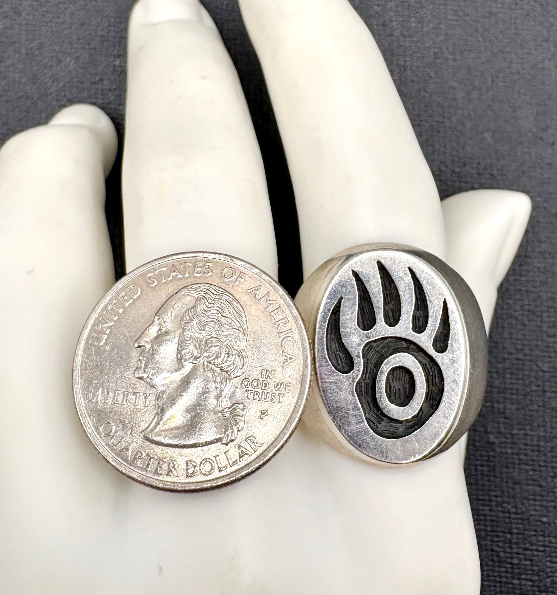 Heavy signed sterling silver Hopi overlay paw ring . Fabulous piece. Size 11 and weighs 15.8 grams. We work with UPS to get your purchases shipped. We drop off your order and they contact you. You pay them directly and they deliver to your address.