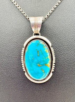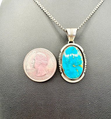 Native American signed Navajo Denetdale . This beautiful necklace has turquoise set in sterling silver. Measures approximately 18 inches long and weighs 12.9 grams . Good condition. We work with UPS to get your purchases shipped. We drop your items off. They contact you . You pay them directly and they deliver to your address.