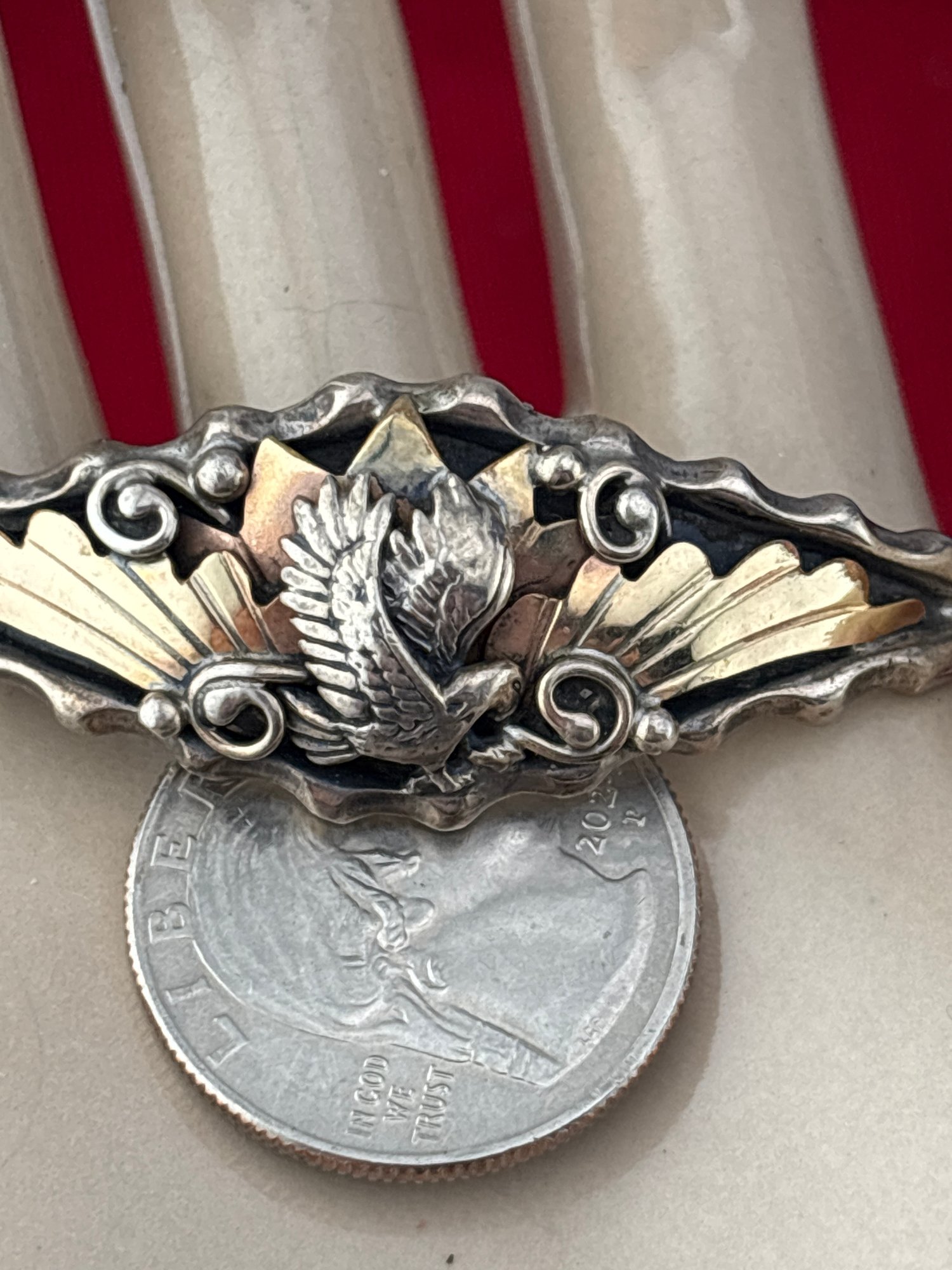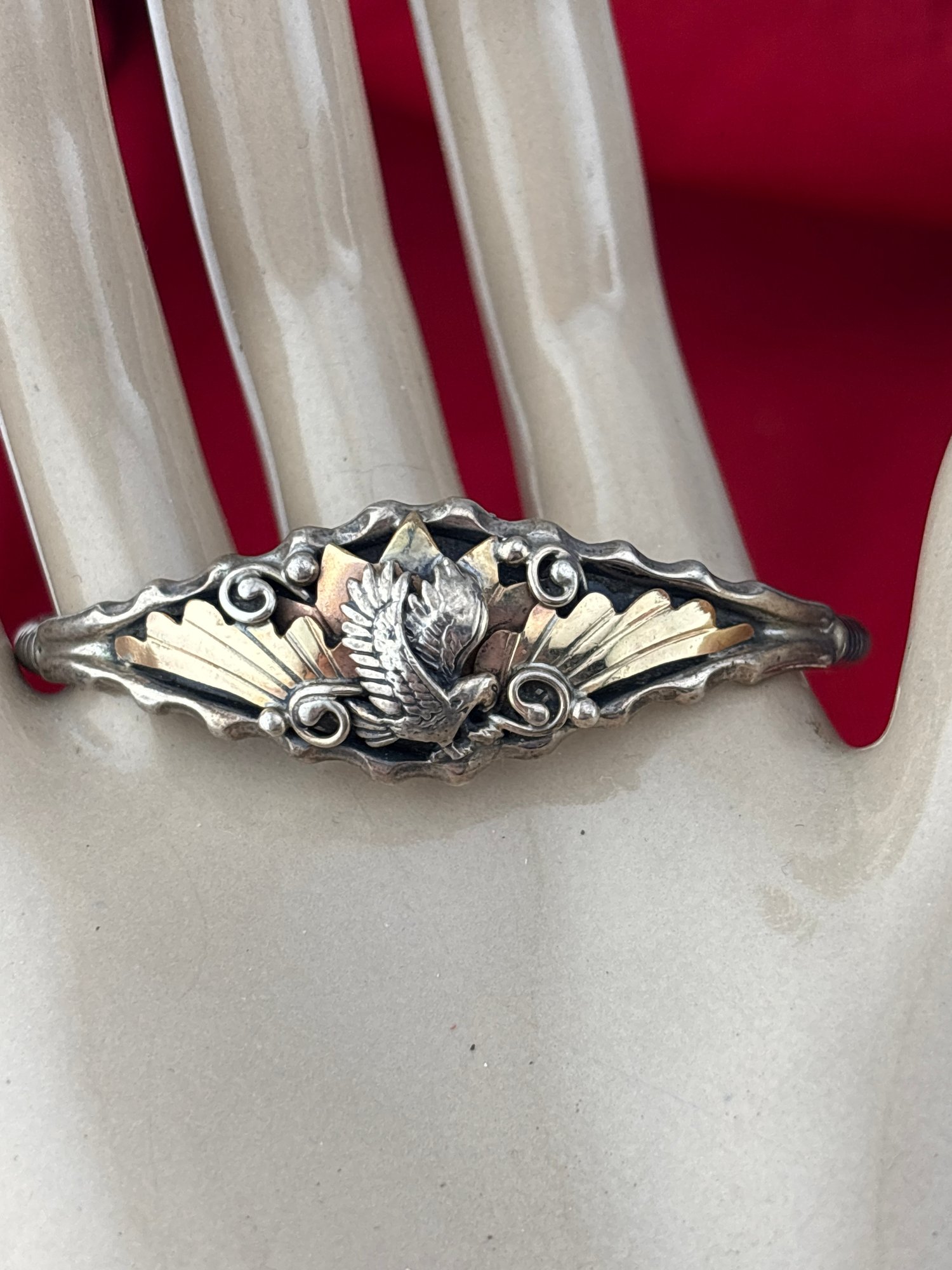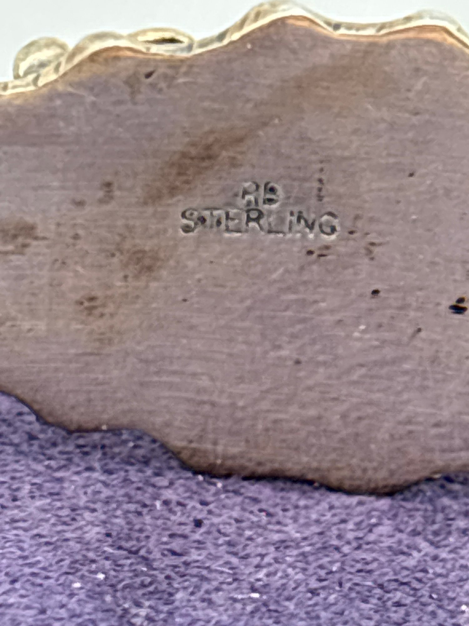 Wonderful signed RB Native American sterling silver eagle bracelet. Measures 6 1/2 inches inside and weighs 15.6 grams. Good condition. We use UPS for shipping. We drop off the Monday after the auction and they will contact you and you pay them directly.