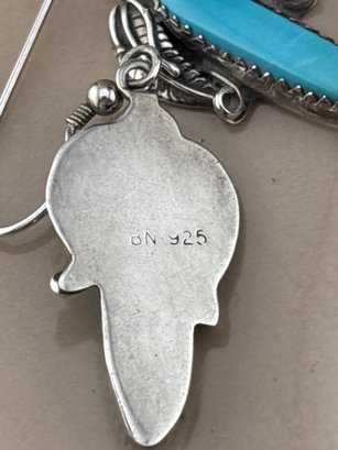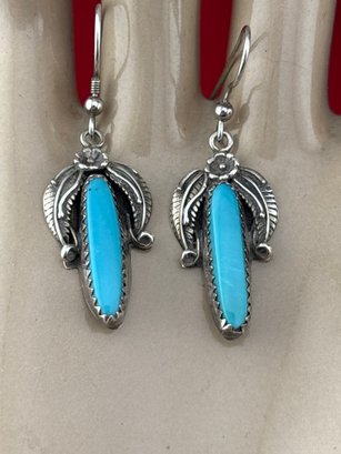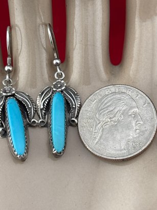 Vintage NATIVE AMERICAN sterling silver turquoise and leaf design earrings . Measures 1 inch long and weighs 4.6 grams. Good condition. We work with UPS , we drop off and they call you and you pay them directly.
