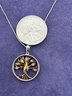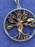 Beautiful pendant with genuine diamonds in tree of life pendant of 10 kt yellow gold in Sterling silver frame on a sterling silver 18 inch chain . Weighs 4 grams. Good condition.