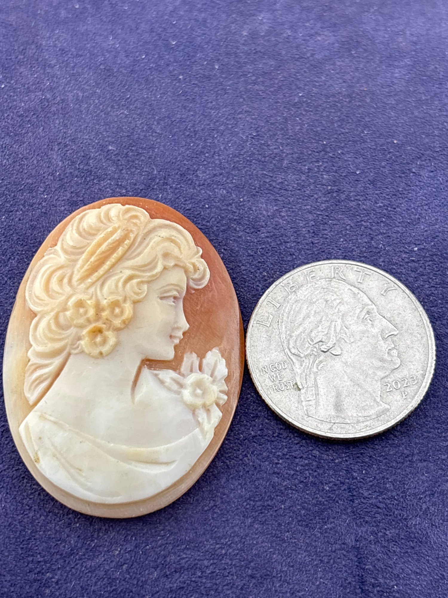 This lovely lady is beautifully carved with a fancy hair and flowers . She is unset . Good condition. We use UPS for shipping. We drop off the Monday after the auction and they will contact you and you pay them directly.