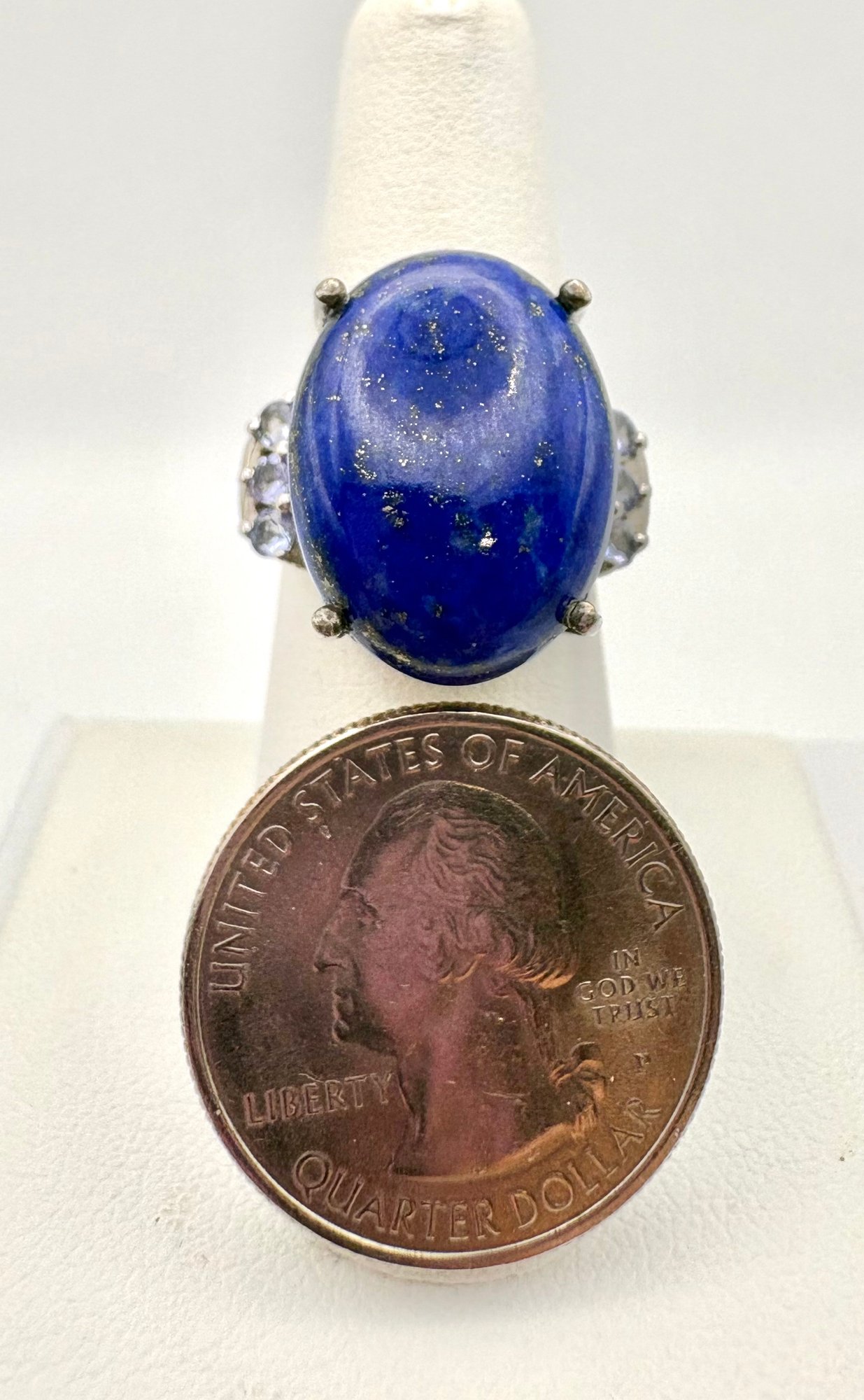 Gorgeous statement ring with genuine lapis and set in sterling silver. Size 7 and weighs 9 grams. Excellent condition with original tag . We use UPS for shipping. We drop off the Monday after the auction and they will contact you and you pay them directly.
