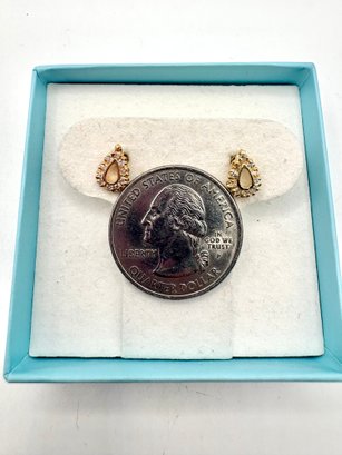 These lovely earrings have genuine white diamonds set in 14 kt yellow gold . They weigh 1.1 grams. Good condition. We work with UPS to get your purchases shipped. We drop off your order . You pay them directly and they deliver to your address.