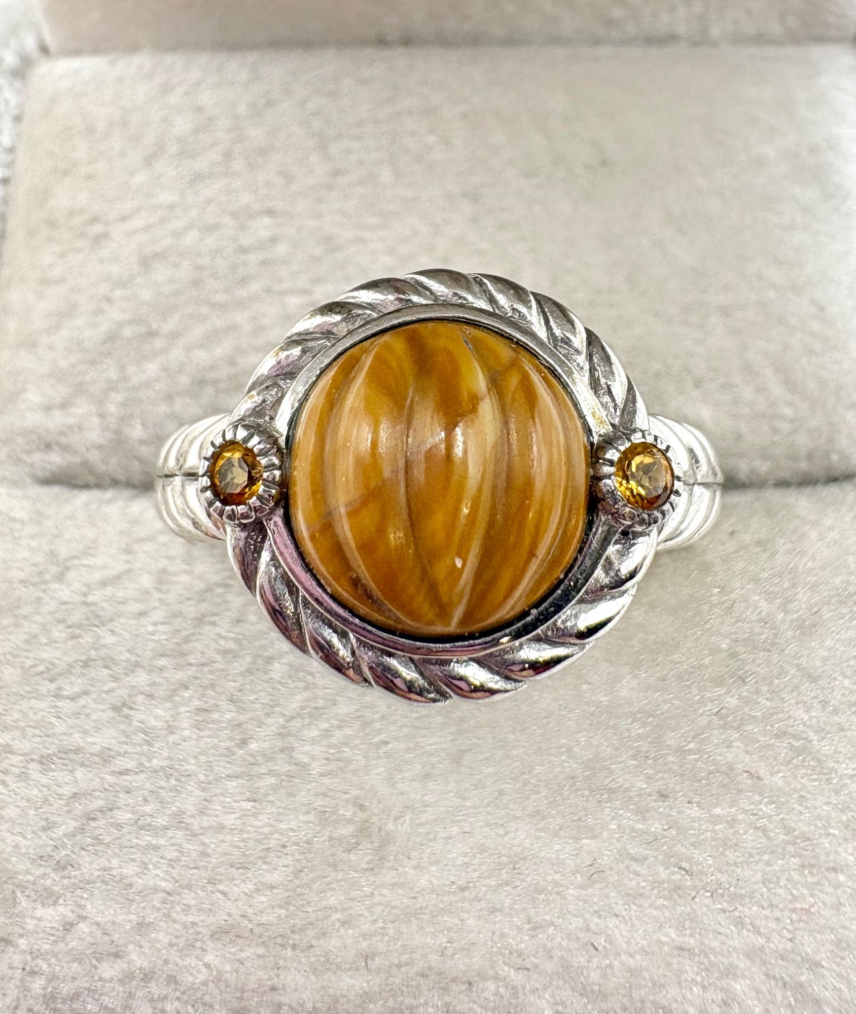 Classic Judith Ripka carved tigers eye and citrines with cable design in sterling silver with . Size 8 and weighs 10 grams. Good condition. For shipping We drop off items at UPS Monday afternoon. They will contact you and you pay them directly.😊