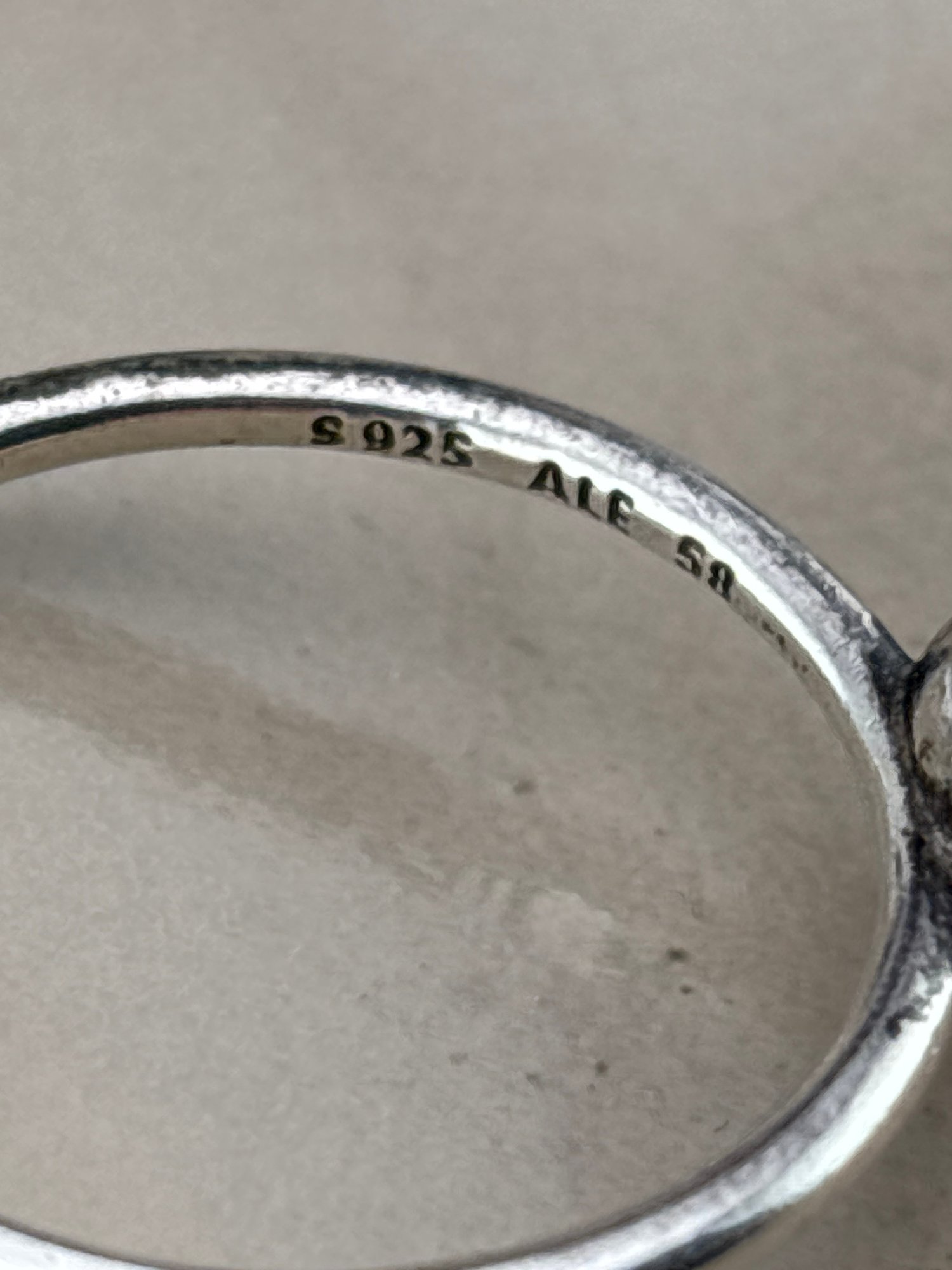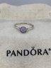 Fun pale pink faceted crystal ball , All sterling silver by PANDORA . Size 8 1/2 and weighs 1.8 grams. Comes with pouch. Good condition.