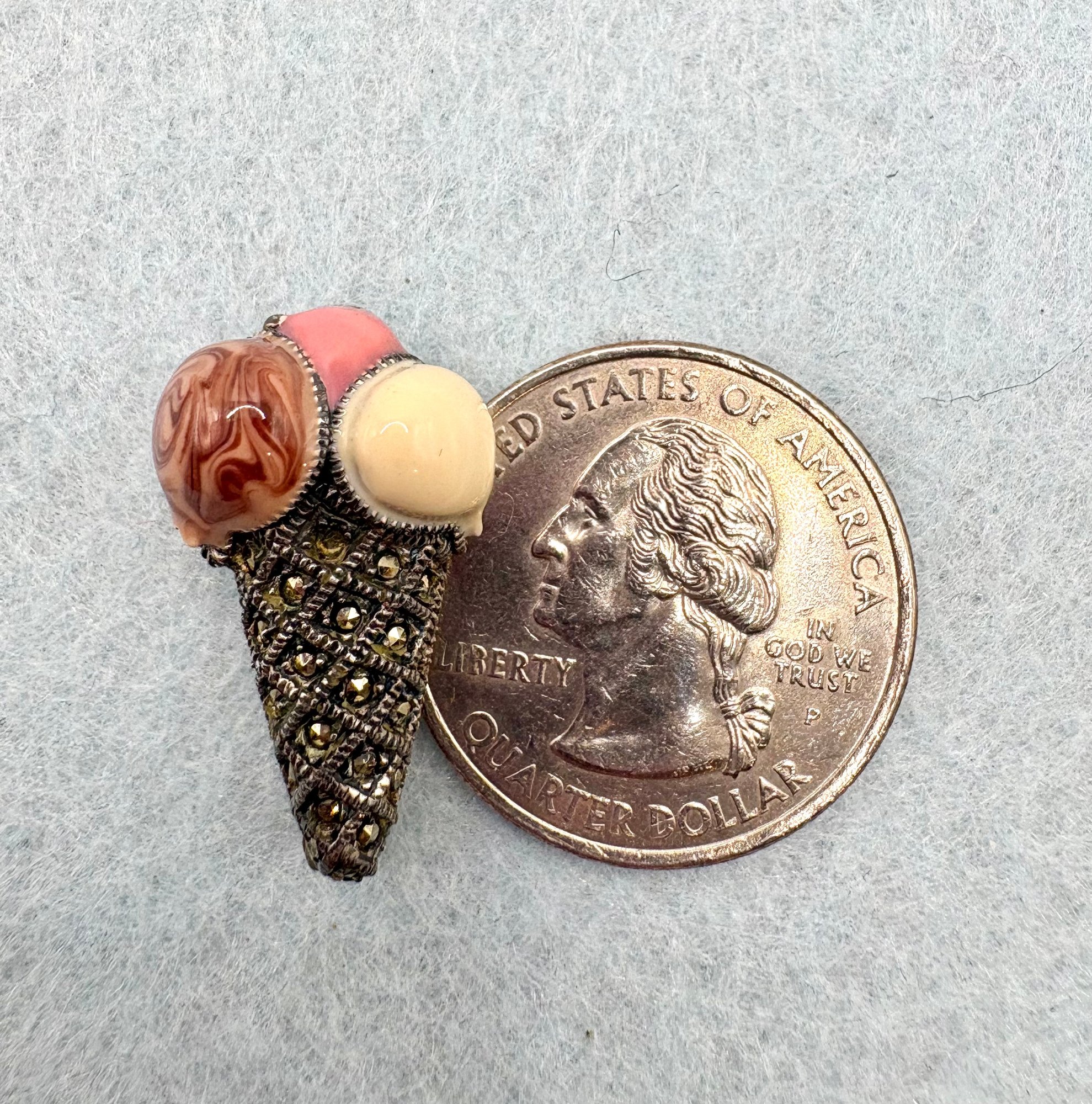 Vintage Adorable enamel sterling silver and marcasite ice cream cone pin by Judith Jack . Weighs 4.8 grams . So cute !Good condition. We work with UPS to get your purchases shipped. We drop off your order and they contact you and you pay them directly.