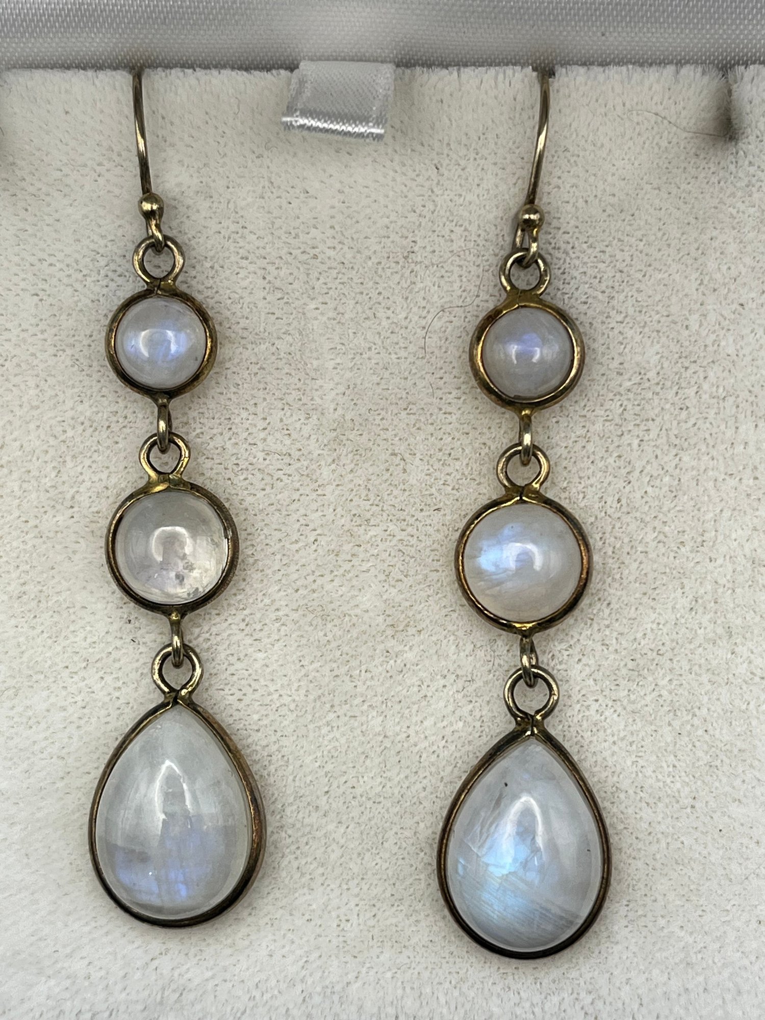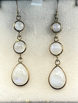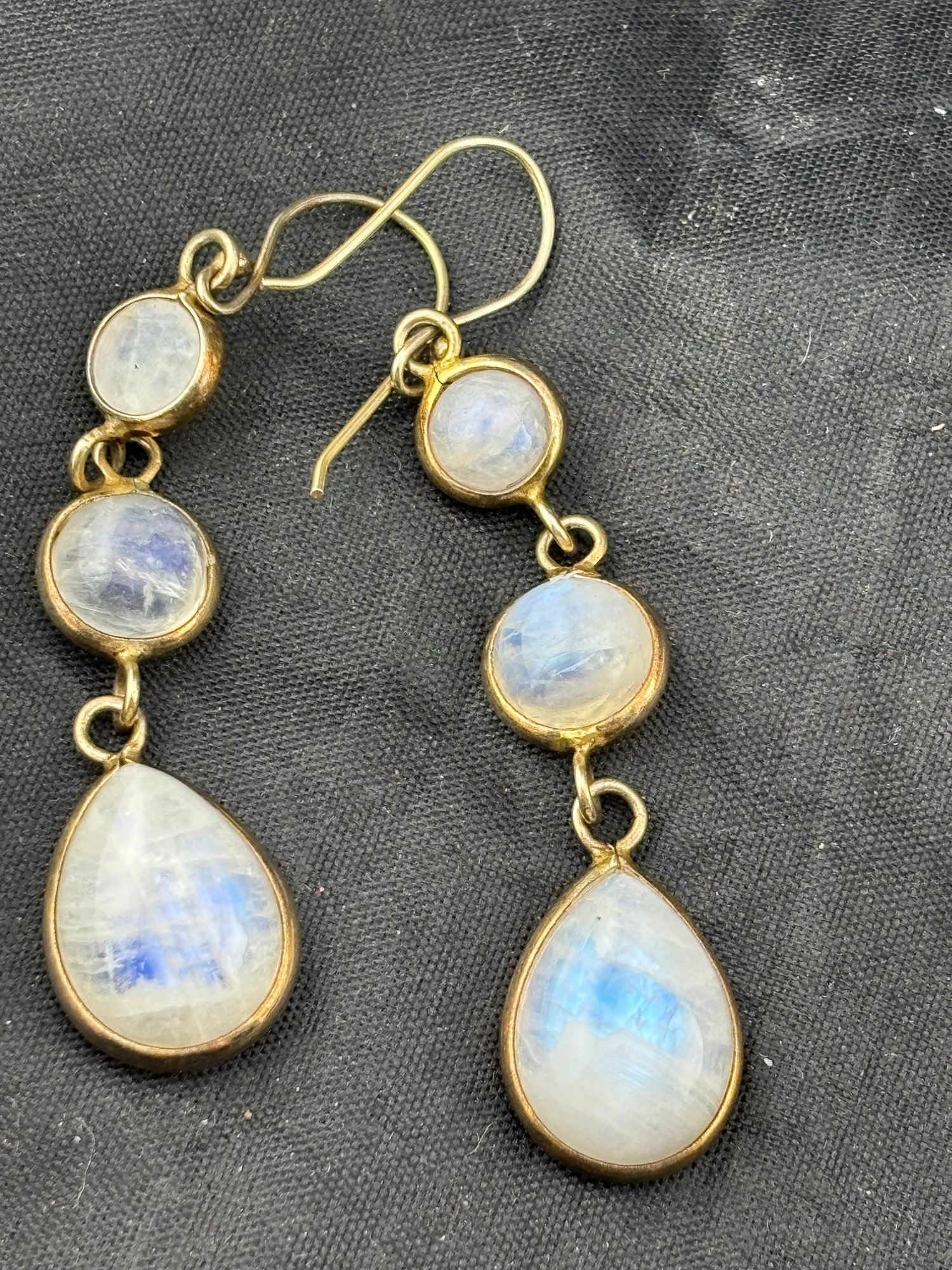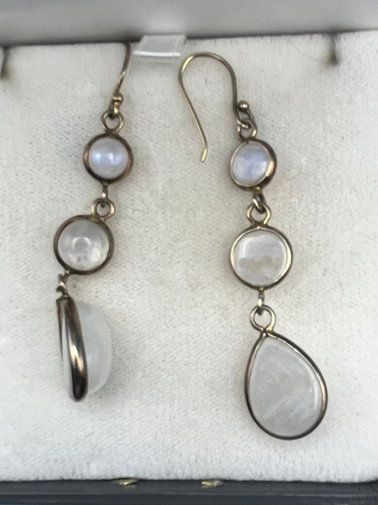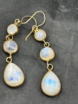 Glowing blue rainbow moonstones set In gold washed sterling silver . They weigh 10 grams. Good condition. We use UPS for shipping. We drop off the Monday after the auction and they will contact you and you pay them directly.