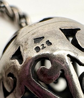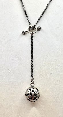 Fun sterling silver necklace has a toggle clasp and filigree ball drop . Made by SILPADA . It measures 16 inches and 2 inch drop . it weighs 8.2 grams. It looks great on. Good condition. We work with UPS to get your purchases shipped. We drop off and they contact you. . You pay them directly and they deliver to your address.