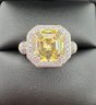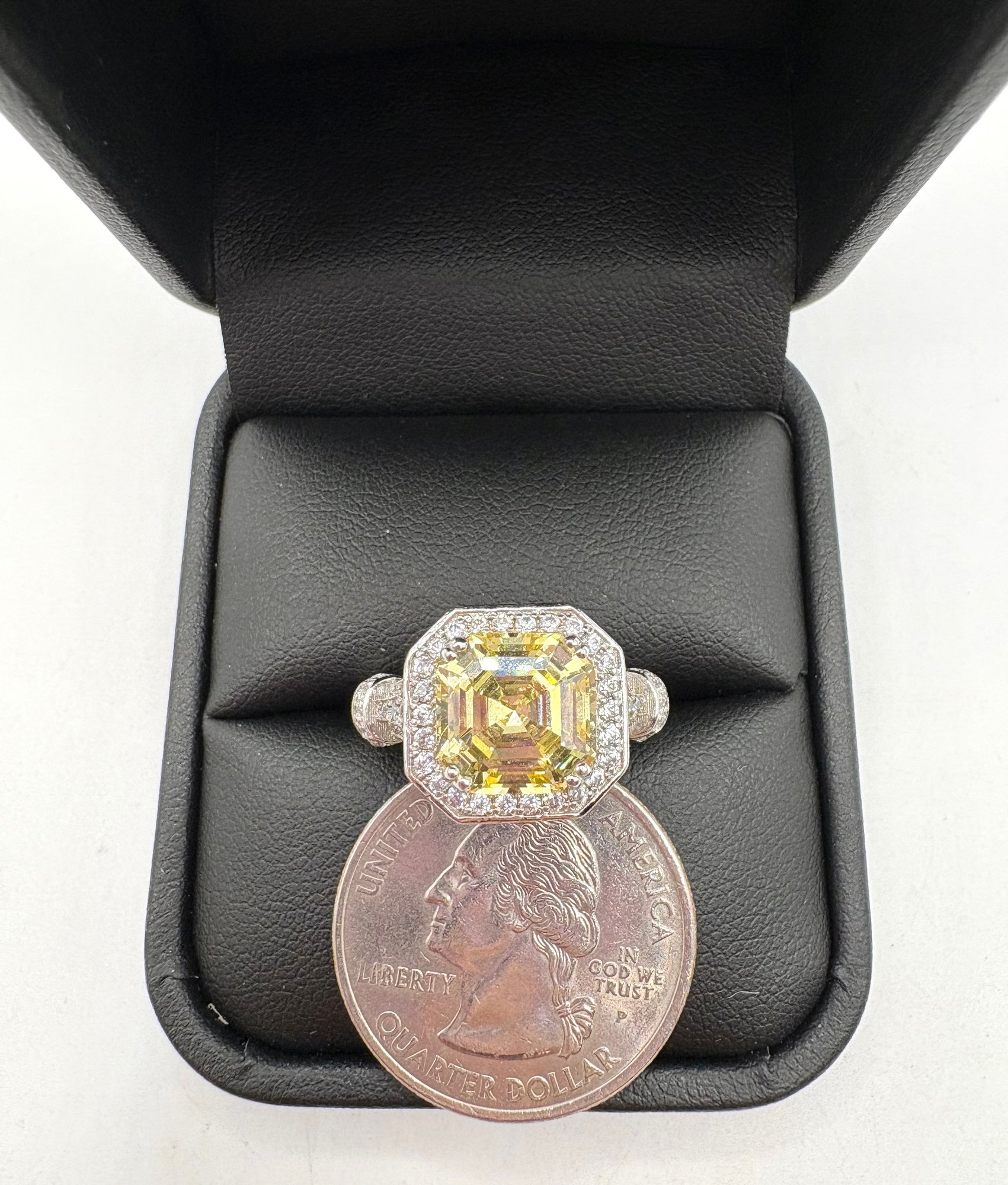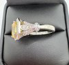 Beautiful open back yellow and white crystals set in sterling silver with a setting. Size 8 and weighs 5.3 grams . Excellent condition . We use UPS for shipping. We drop off the Monday after the auction and they will contact you and you pay them directly.