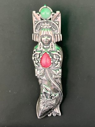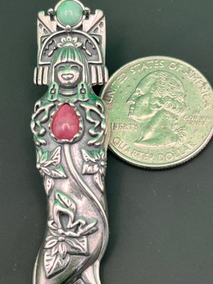 Fabulous CAROLYN POLLACK sterling silver with turquoise and rhodochrosite geisha girl pendant enhancer . Can be worn on a cord , chain or beads . Measures just shy of 2 1/2 inches long and weighs 12.8 grams. Good condition. We use UPS for shipping. We drop off the Monday after the auction and they will contact you and you pay them directly.