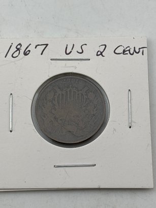 Unusual 1867 2 cent coin US copper coin . Good condition. We use UPS for shipping. We drop off the Monday after the auction and they will contact you and you pay them directly.