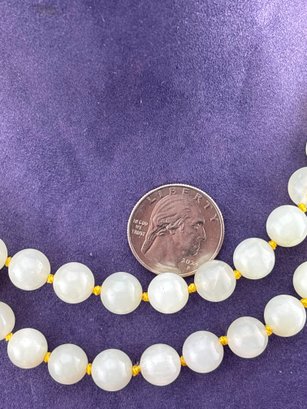 Lovely hand knotted genuine pale green jade beads . They measure approximately 34 inches around and weigh approximately 111 grams. Good condition. We use UPS for shipping. We drop off the Monday after the auction and they will contact you and you pay them directly.