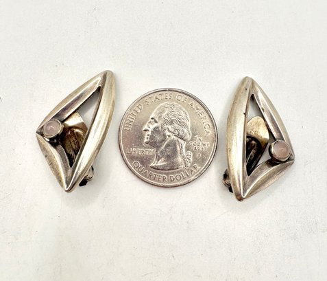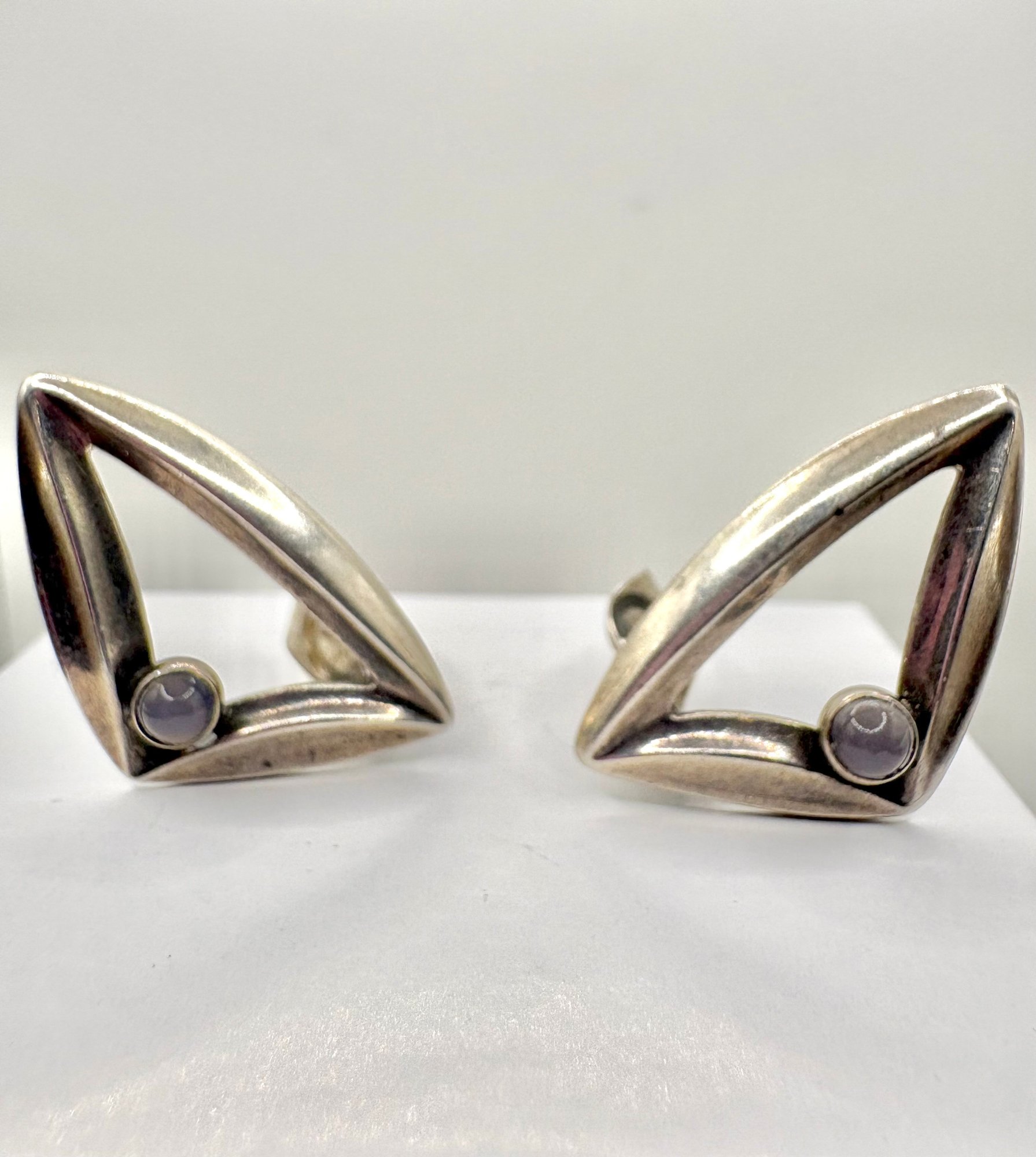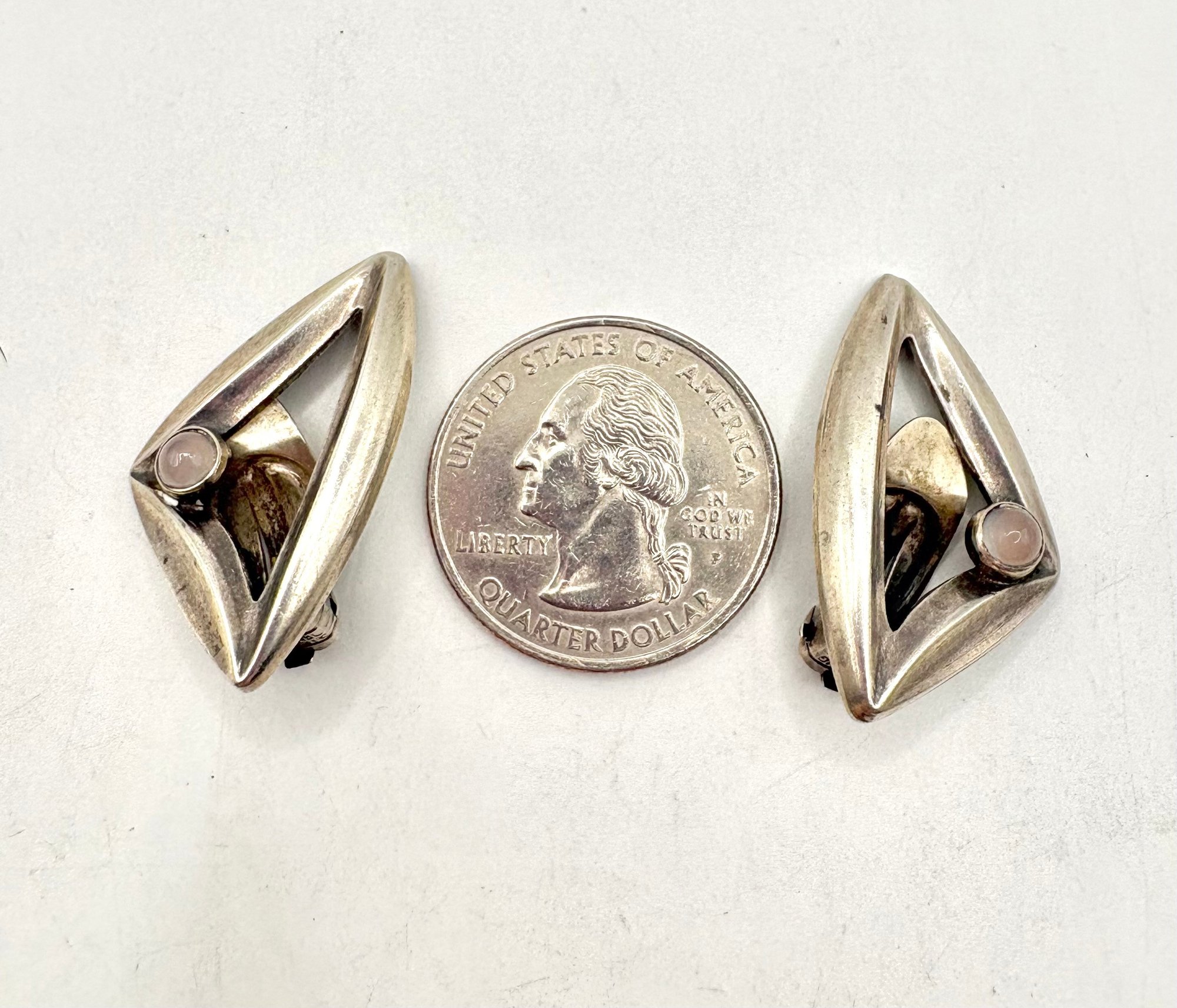 Classic sterling silver and moonstone earrings from Denmark. Clip on not pierced . Dates from the 1940s . They weigh 6.7 grams. Good condition. We use UPS for shipping. We drop off the Monday after the auction and they will contact you and you pay them directly.