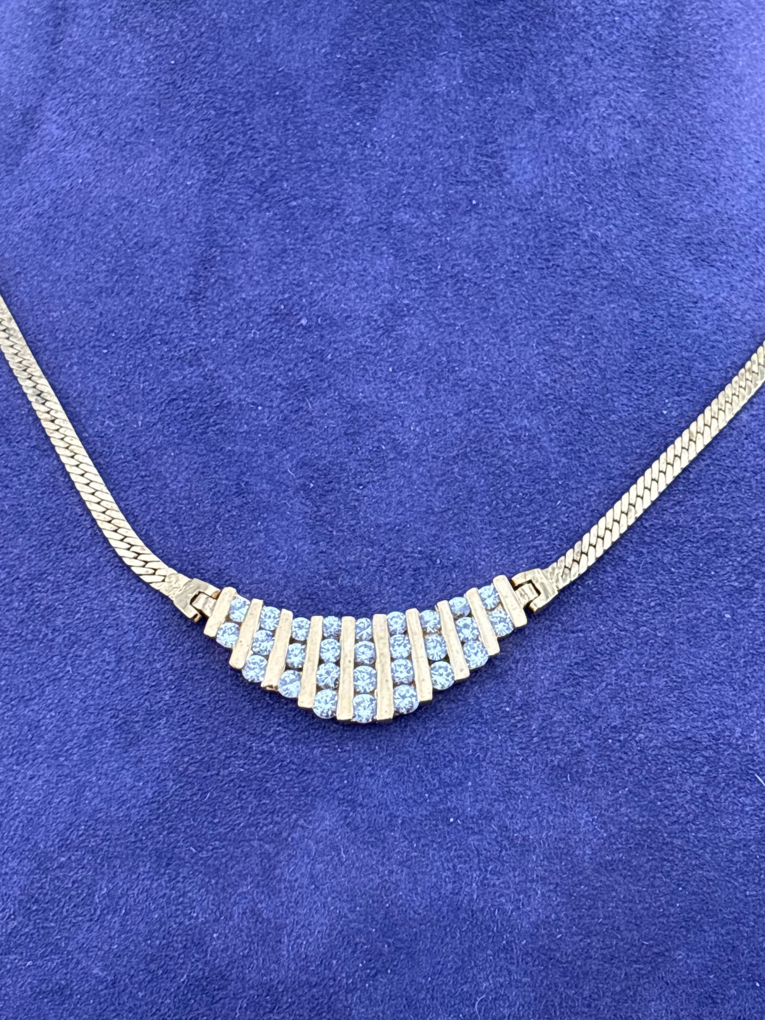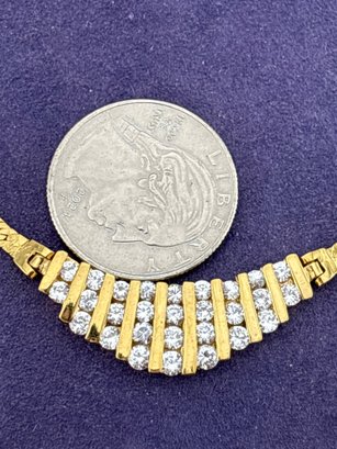 Beautiful gold washed sterling silver with crystals elegant necklace. Measures 18 inches long and weighs 15.9 grams. Looks like the real deal! Good condition.