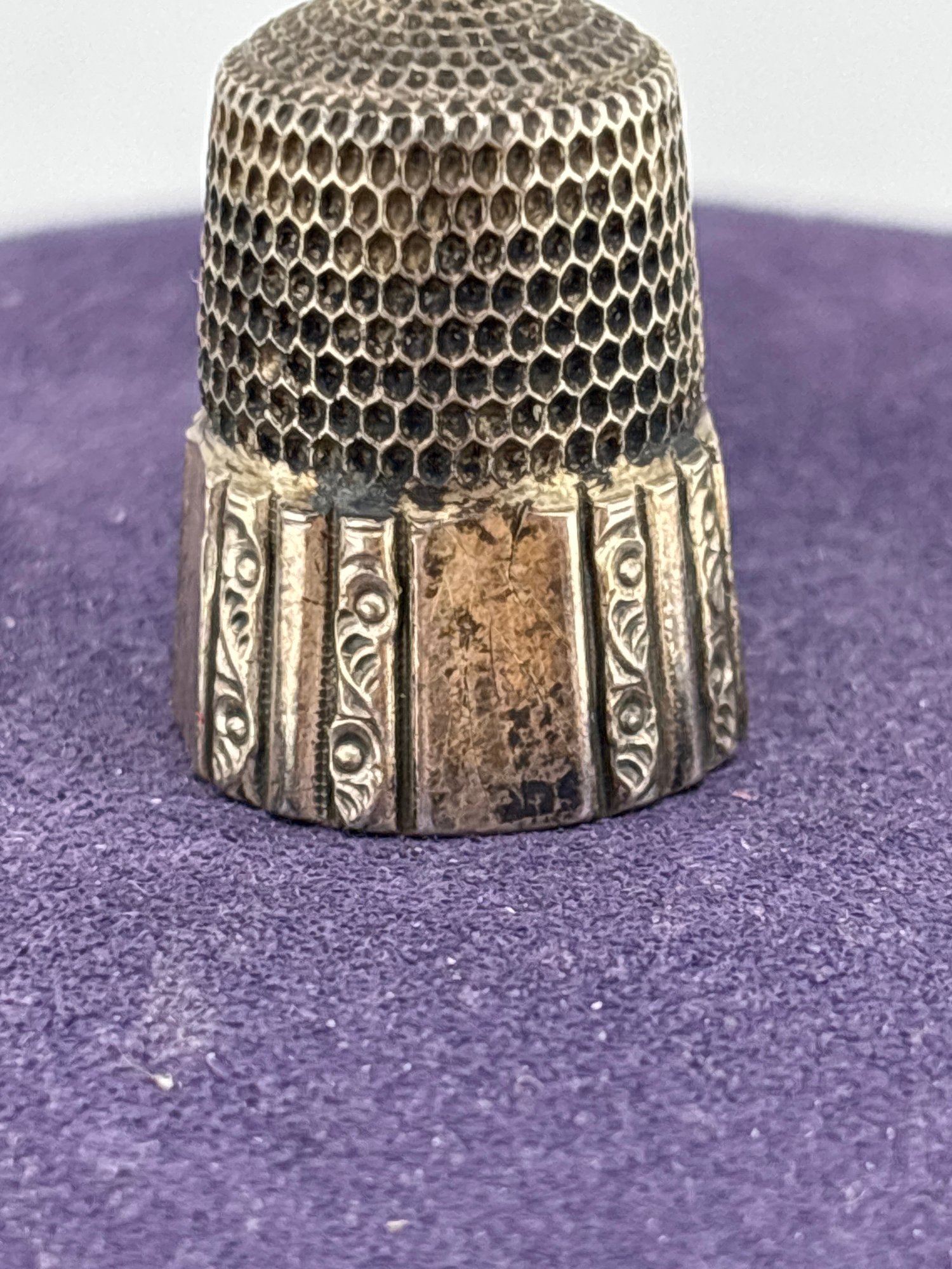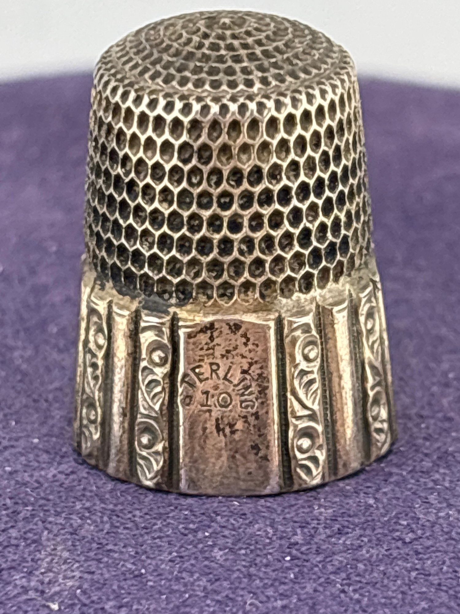 Wonderful antique vintage sterling silver fancy sewing thimble size 10 . Weighs 5.6 grams . Good condition.