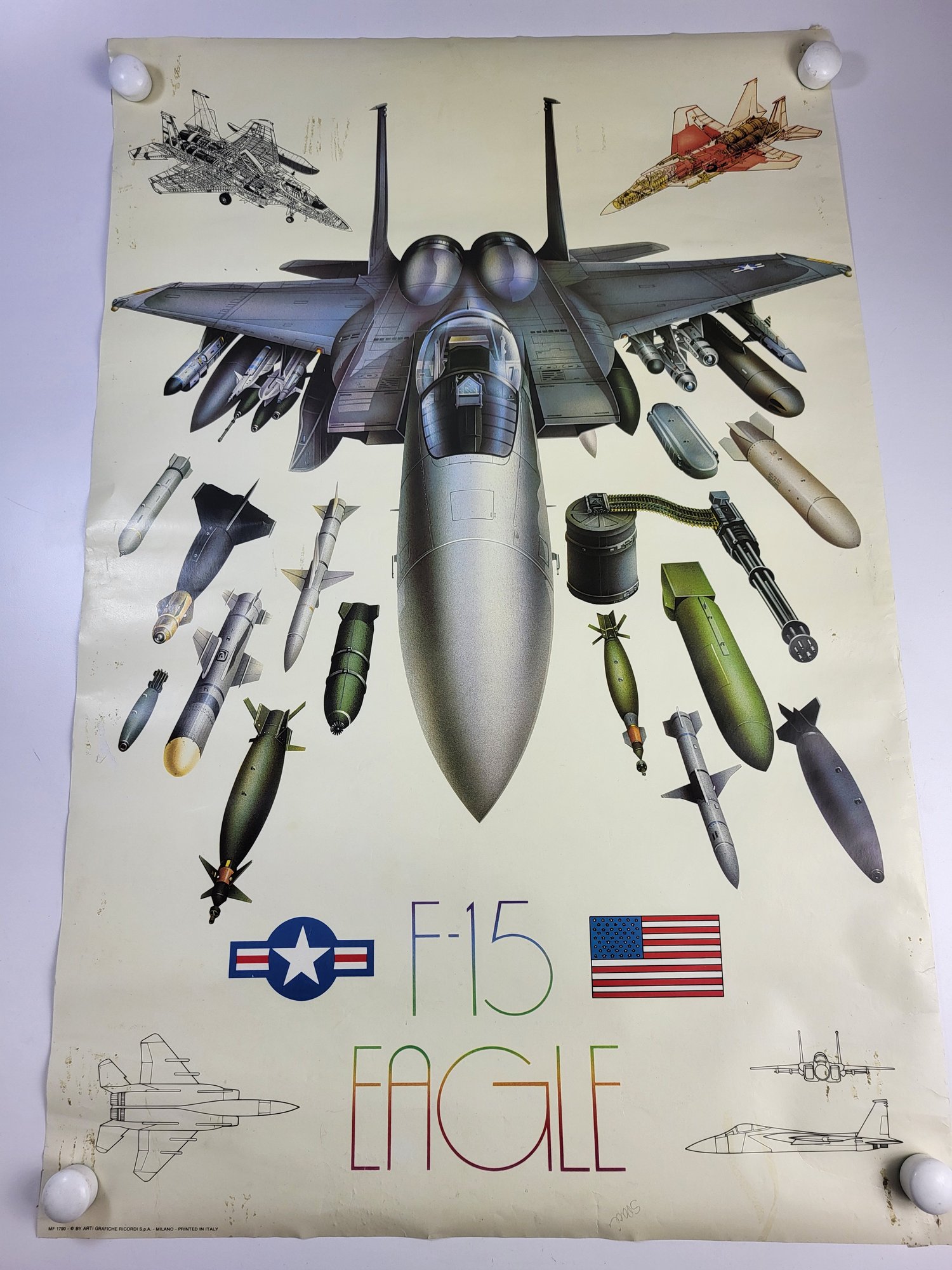#12 Vintage F-15 Eagle Fighter Jet Bombs Blueprint Poster 36" X 23" Inches
