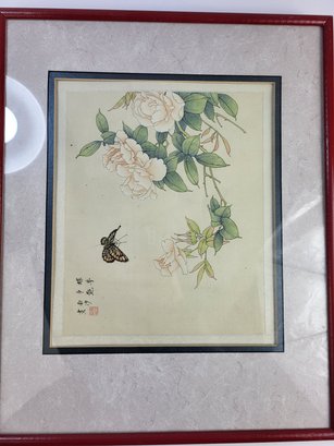 20" X 16" Japanese Butterfly Flowers Print On Silk